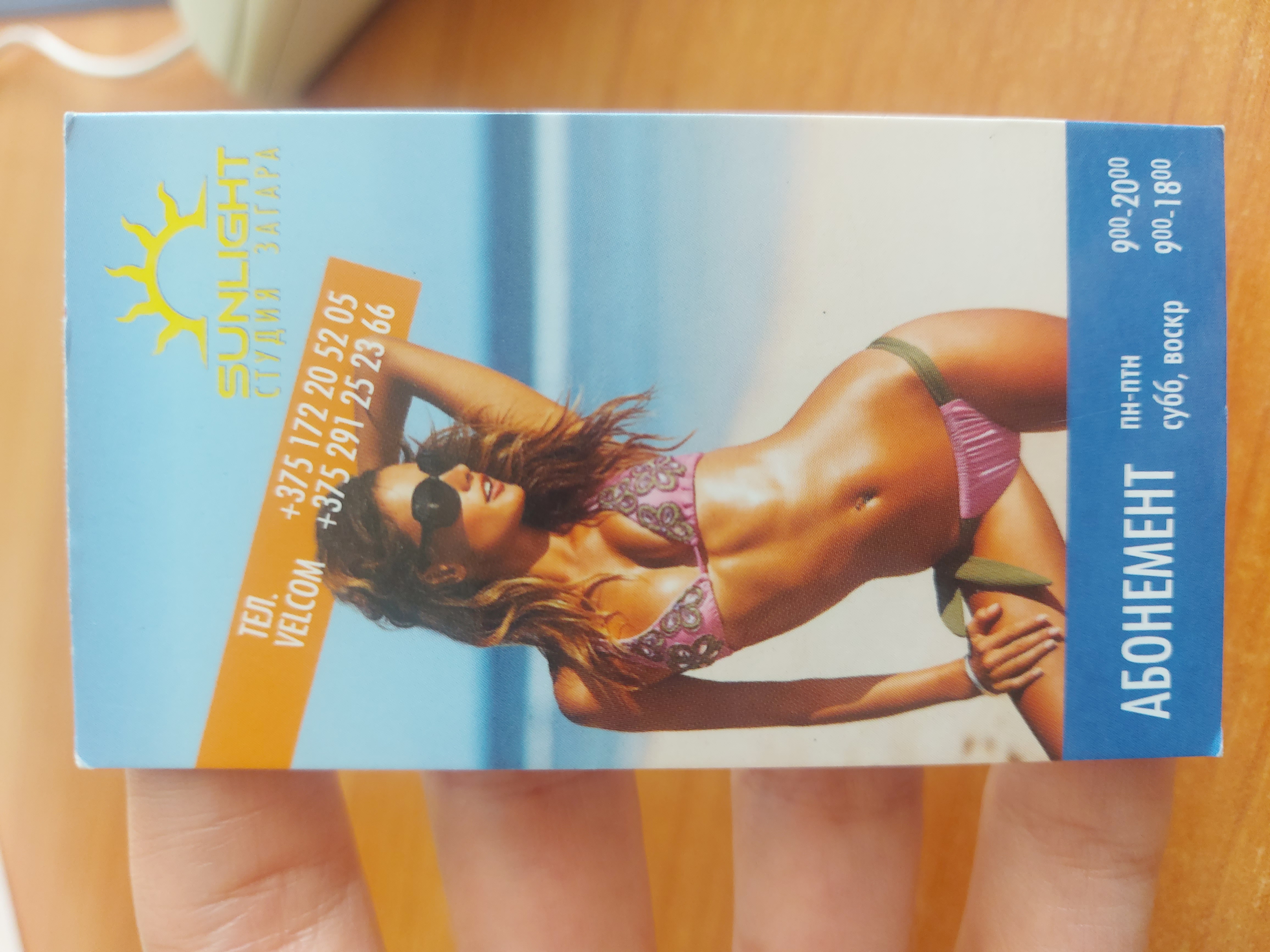 - Студия загара "Sunlight" временно не будет работать по воскресеньям. Приносим извинения за неудобства. Ждём Вас: пн-пт 9:00-20.00, сб: 9:00-18:00 (тех. перерыв: 14:00-14:30)