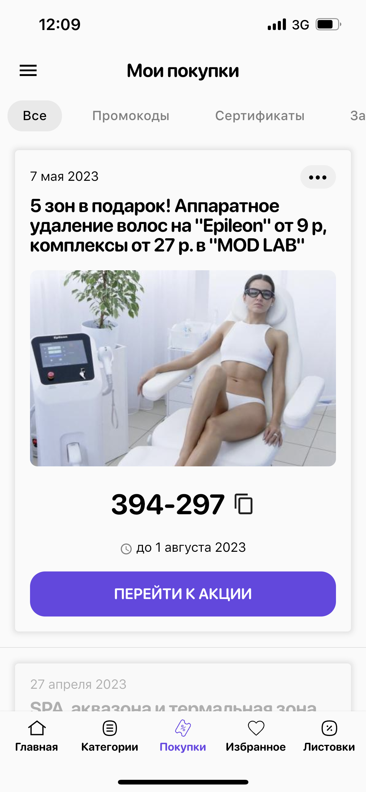- Один промокод - одно посещение со скидкой.