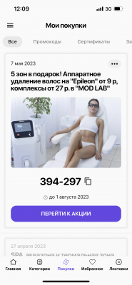 - Промокод дает право на скидку 50% на первое посещение аппаратного удаления волос в "MODLAB"