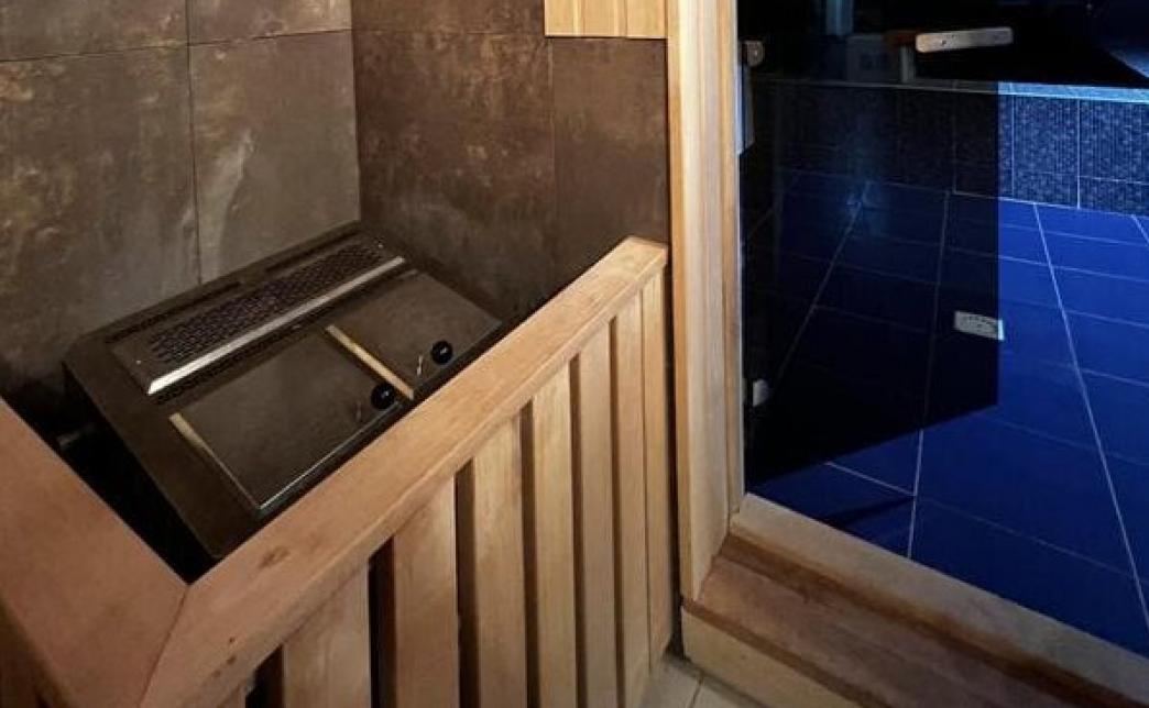 А чтобы снять легкую утомленность и привести в равновесие захлестнувшие эмоции в соседнем помещении располагается сауна с умной печкой. Это умная печка сама поддерживает комфортную для вас температуру, а также способна регулировать влажность. Вам остается только получать удовольствие и наслаждаться этими мгновениями, а тем более, что за дверью парной вас уже ждет просторный бассейн с освежающей водой.