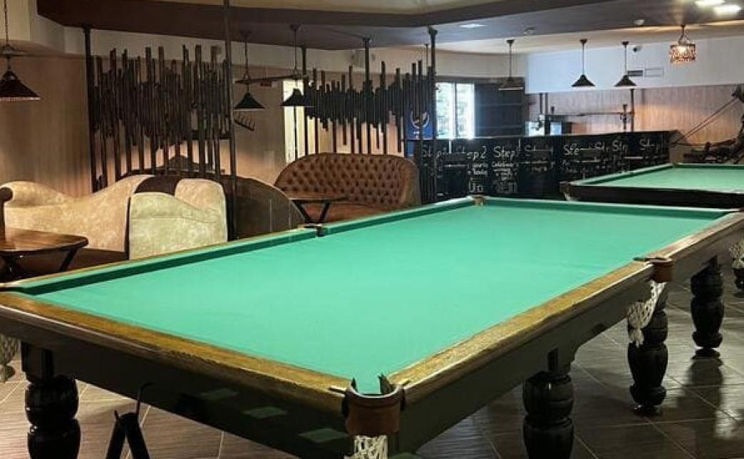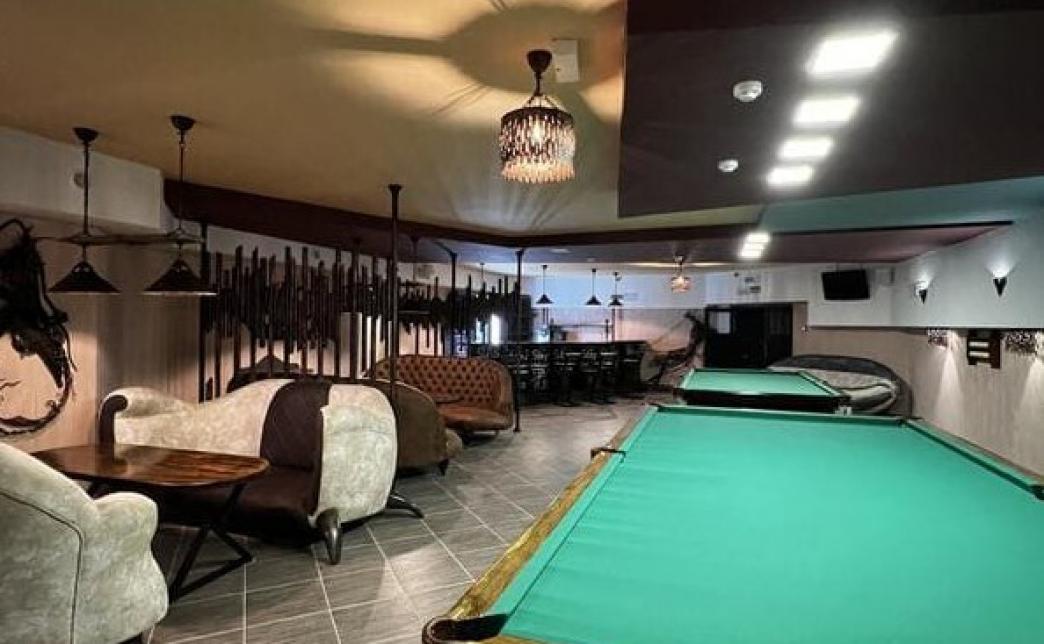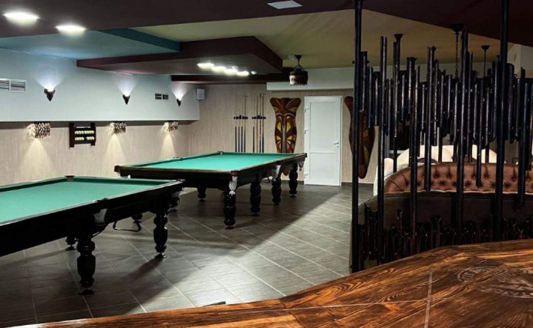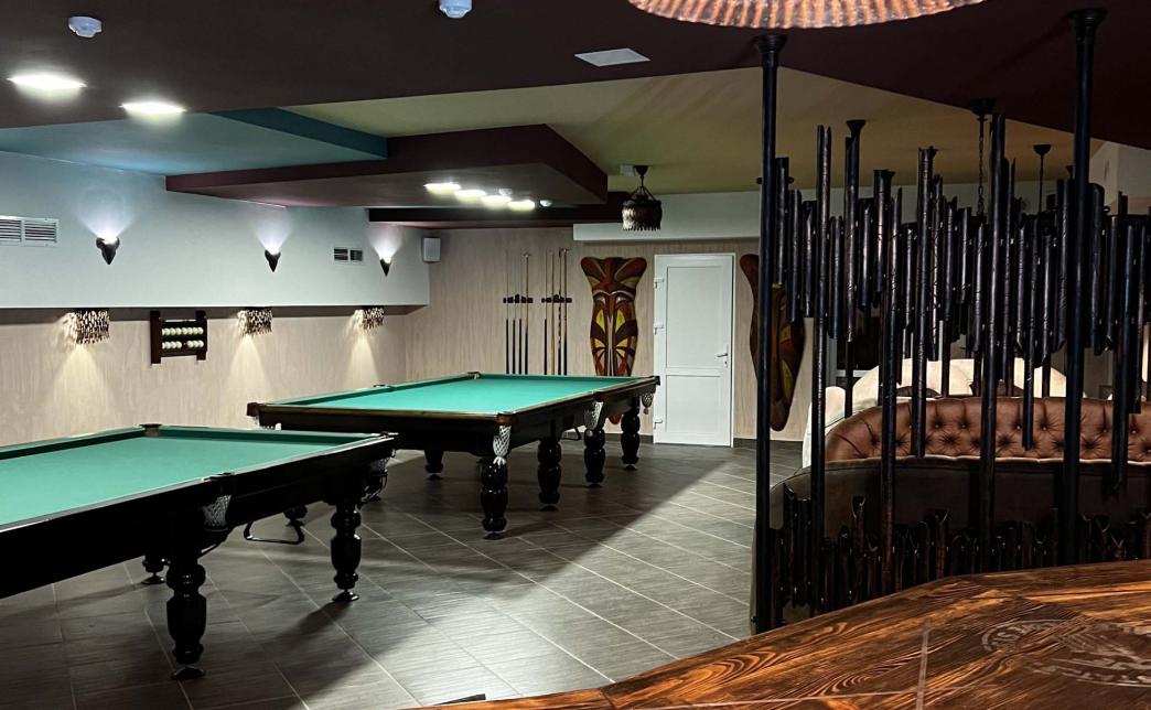 А дальше к развлечениям - пора тратить калории. Первым делом, спустившись в полуподвальное помещение вы попадете в бильярдную.
