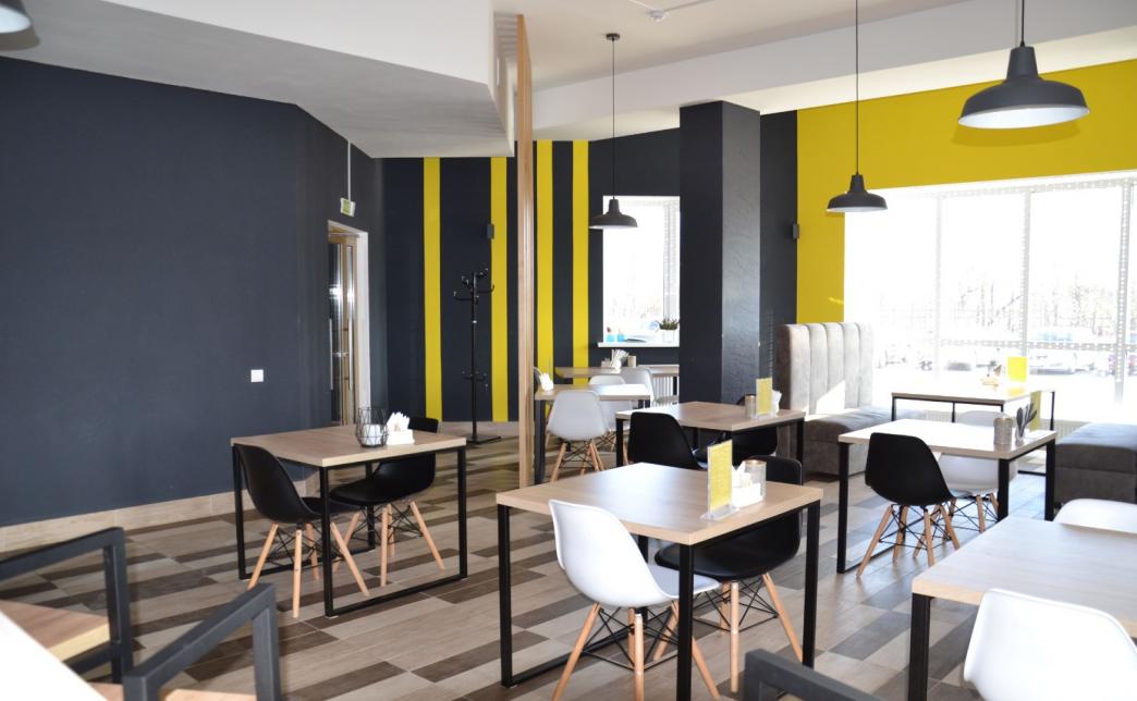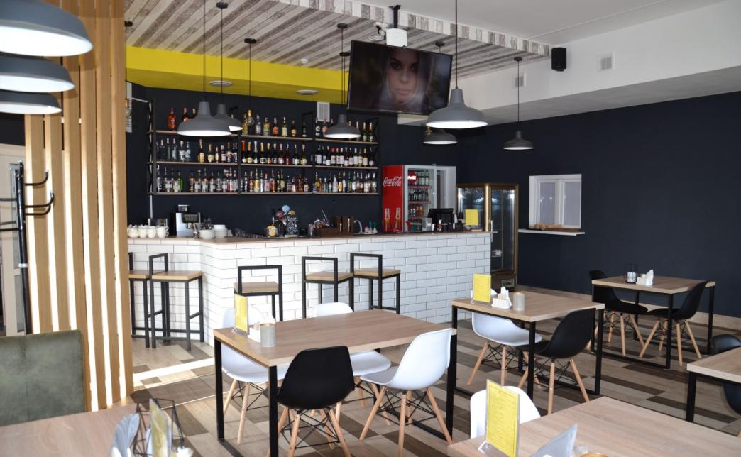 Уютное, просторное кафе, современный интерьер, привлекательная барная стойка, удобная мебель и все это окутано доносящимися с кухни ароматными запахами разнообразных блюд.