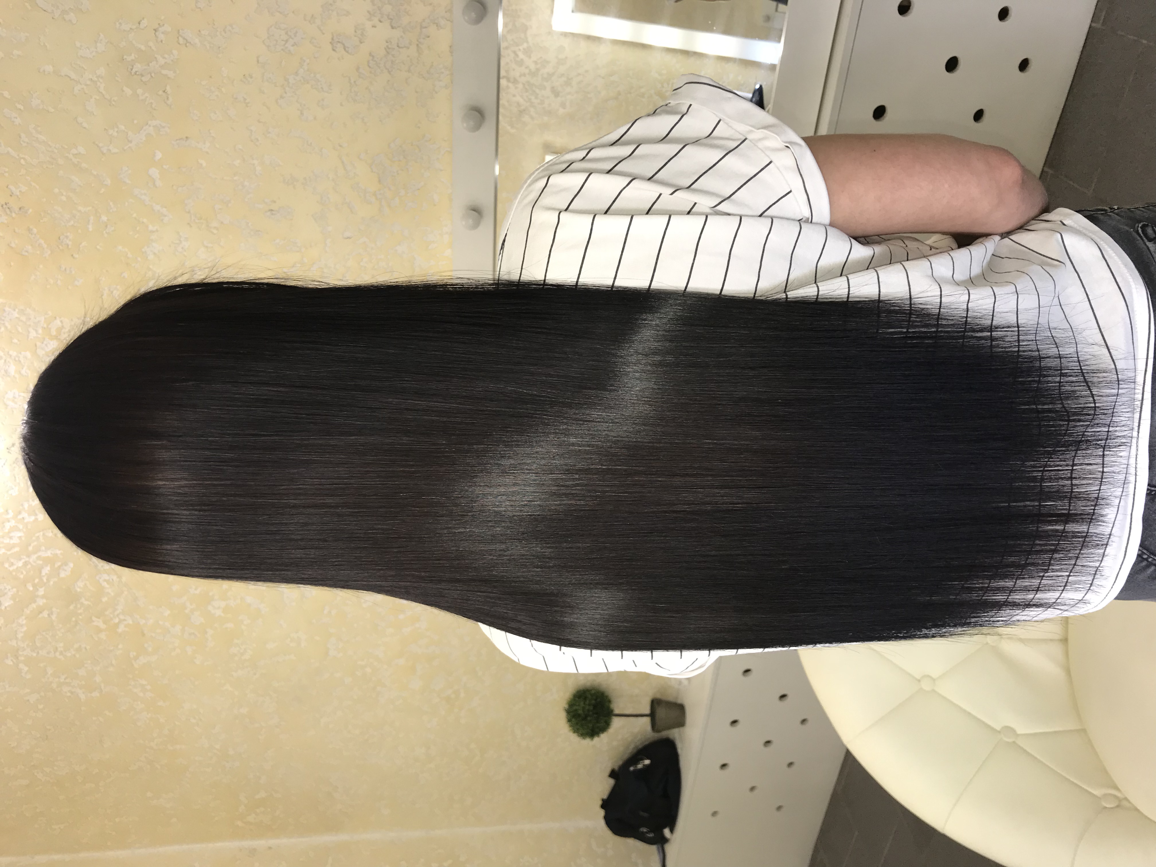 Пришла на процедуру за 4 дня до отпуска. Не уверена была, что именно хочу. Посоветовали нанопластику. Волос получился идеально гладким и блестящим. Боялась, что пересушатся и поломаются, но все отлично уже третью неделю. Легко пережили ежедневное купание в море и затем мытье. Еще и подровняли бесплатно. Девочки очень хорошие, к делу подходят по совести. Спасибо большое!