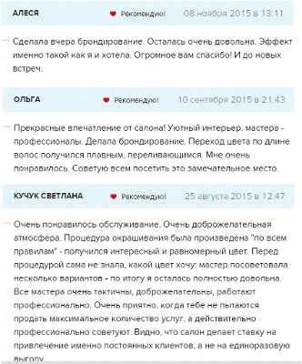 В салоне "Де Пари Шарм" приятная атмосфера, всегда вкусный чай кофе, душевный прием и опытные профессионалы парикмахеры. Они не просто окрашивают - они придают образ, при этом заботятся о здоровье Ваших волос.