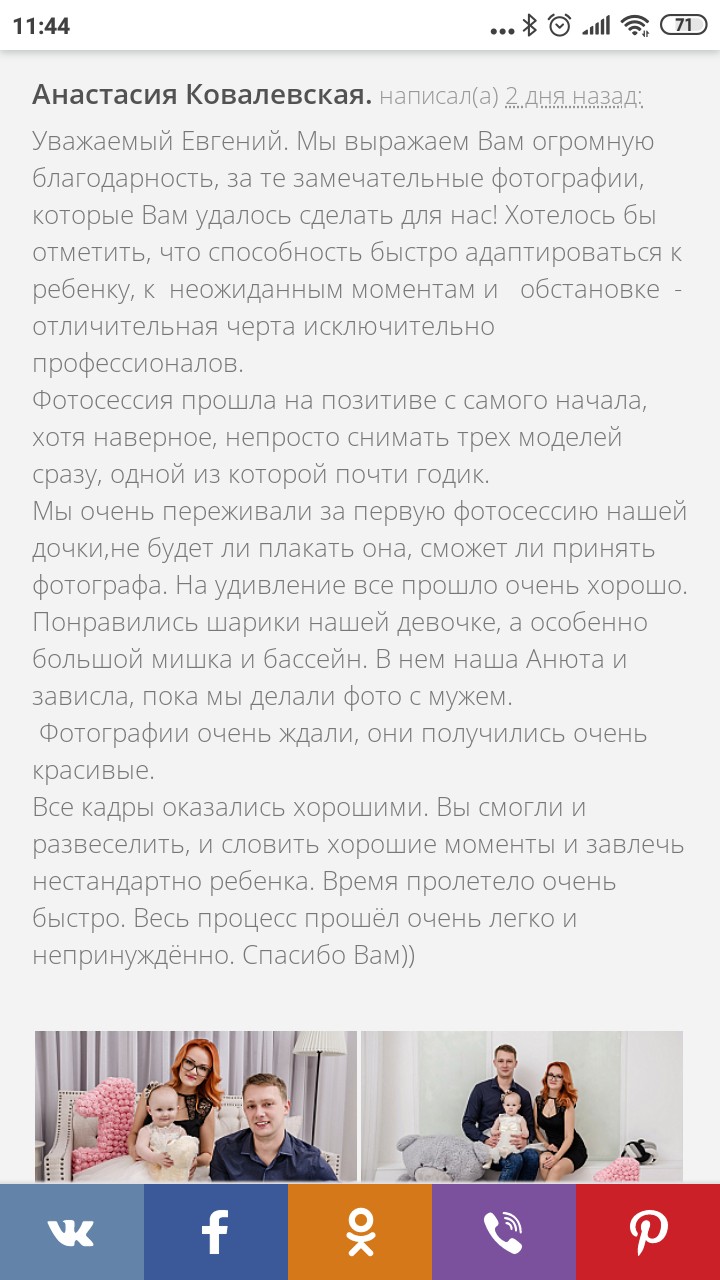 Несколько последних отзывов с моих фотосессий