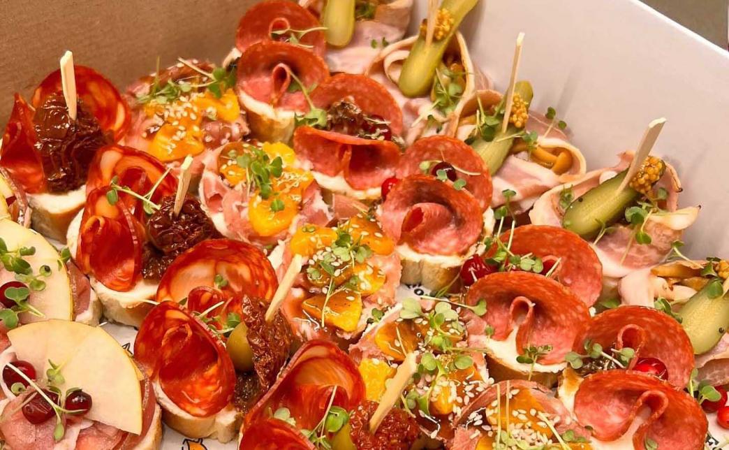 - кростини с сальчичоном, черри и оливкой - 3 шт.
