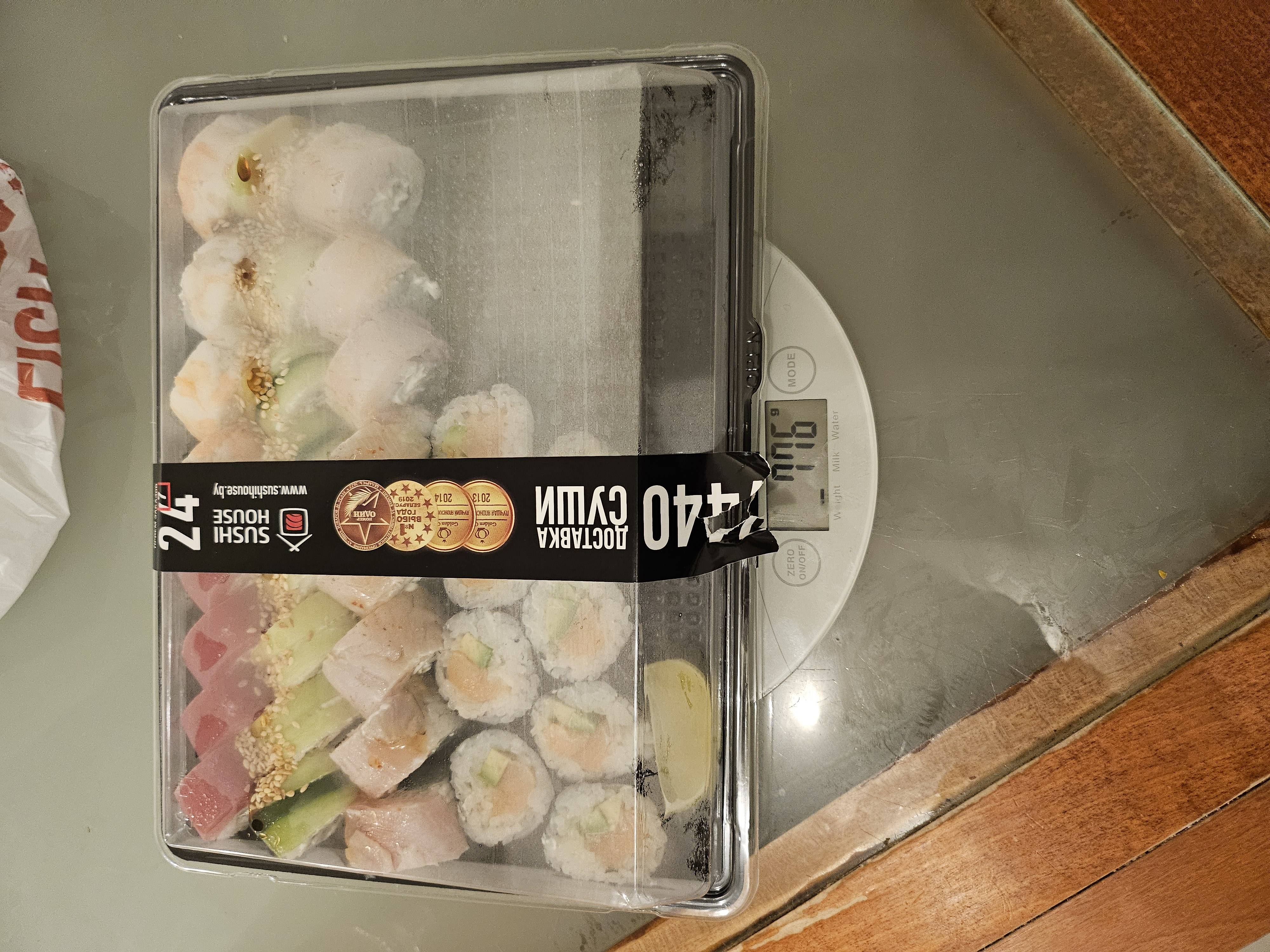 Заказывали на сливках два сета. Кинг сет и Акира сет. Самовывоз был с Партизанского проспекта . Когда забирали сеты, то попросили сделать контрольное взвешивание. Цифры на весах очень порадовали, за что огромное спасибо Сеты были свежимы, роллы скручены отлично, дольки лайма были в двух сетах, так же была микрозелень, в виде украшения. Все понравилось. Спасибо!