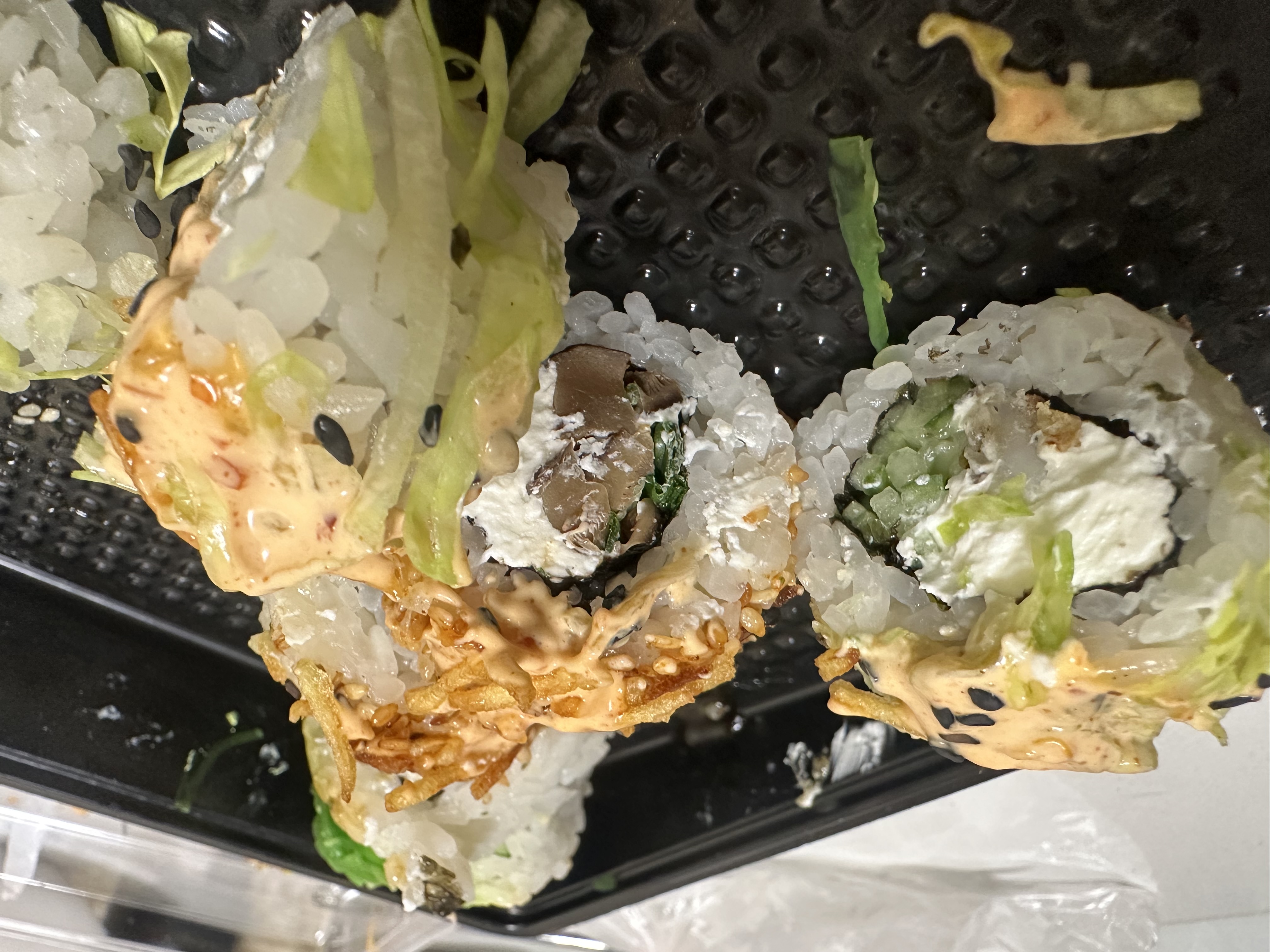 Разваливаются. Рис сырой. Черствые. Подумайте прежде чем заказывать