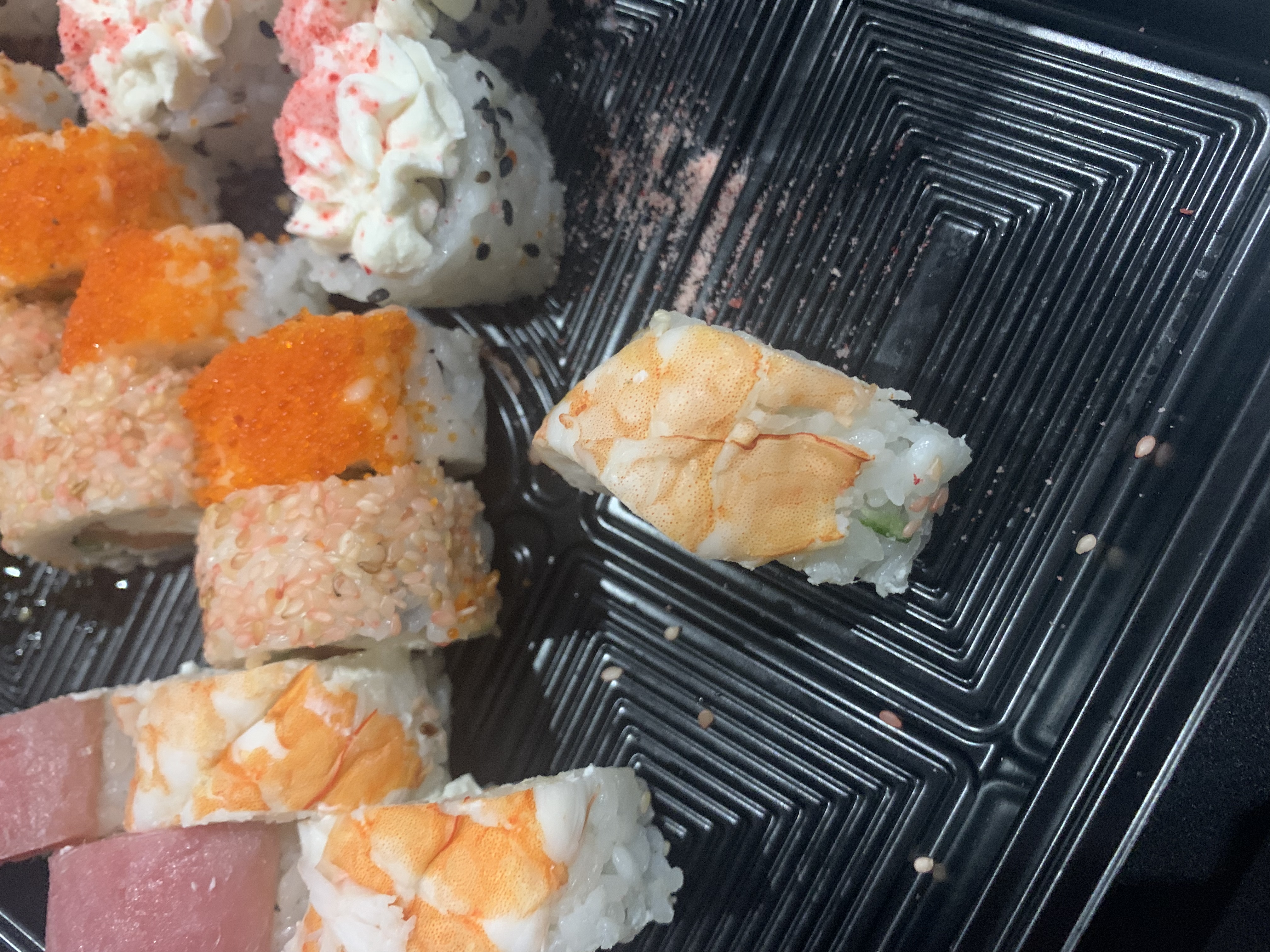 В одном из кусоков ролла с тунцом попалась длинная жила с острой костью.