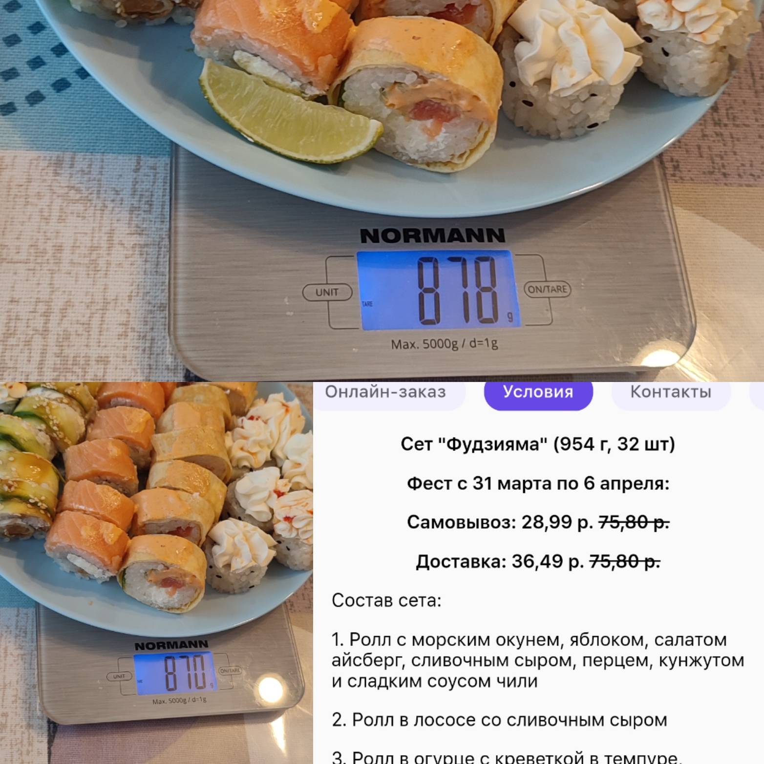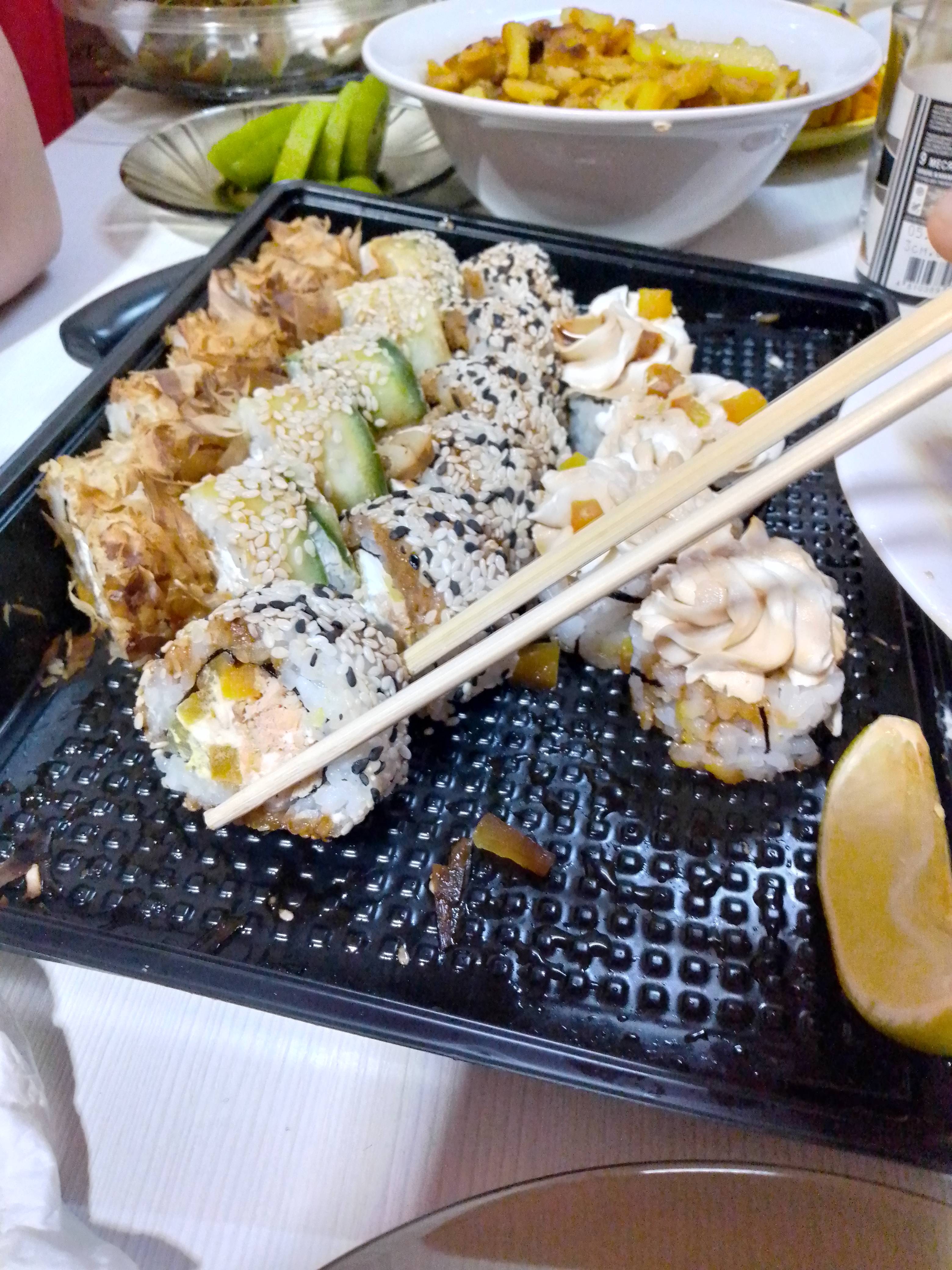 Ну а роллы были очень вкусными, свежими и сытными 👍 Будем заказывать еще, но в следующий раз надеюсь без опозданий 🙂
