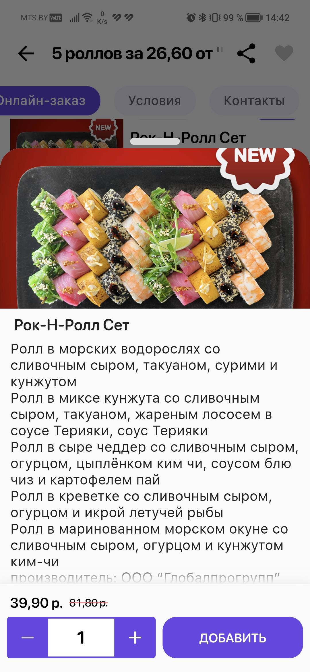 - Стоимость сета (1175 г, 40 шт):
