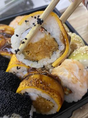 Супер, свежие и очень вкусные. Начинки много, рис как положено. Всё вовремя всем советую