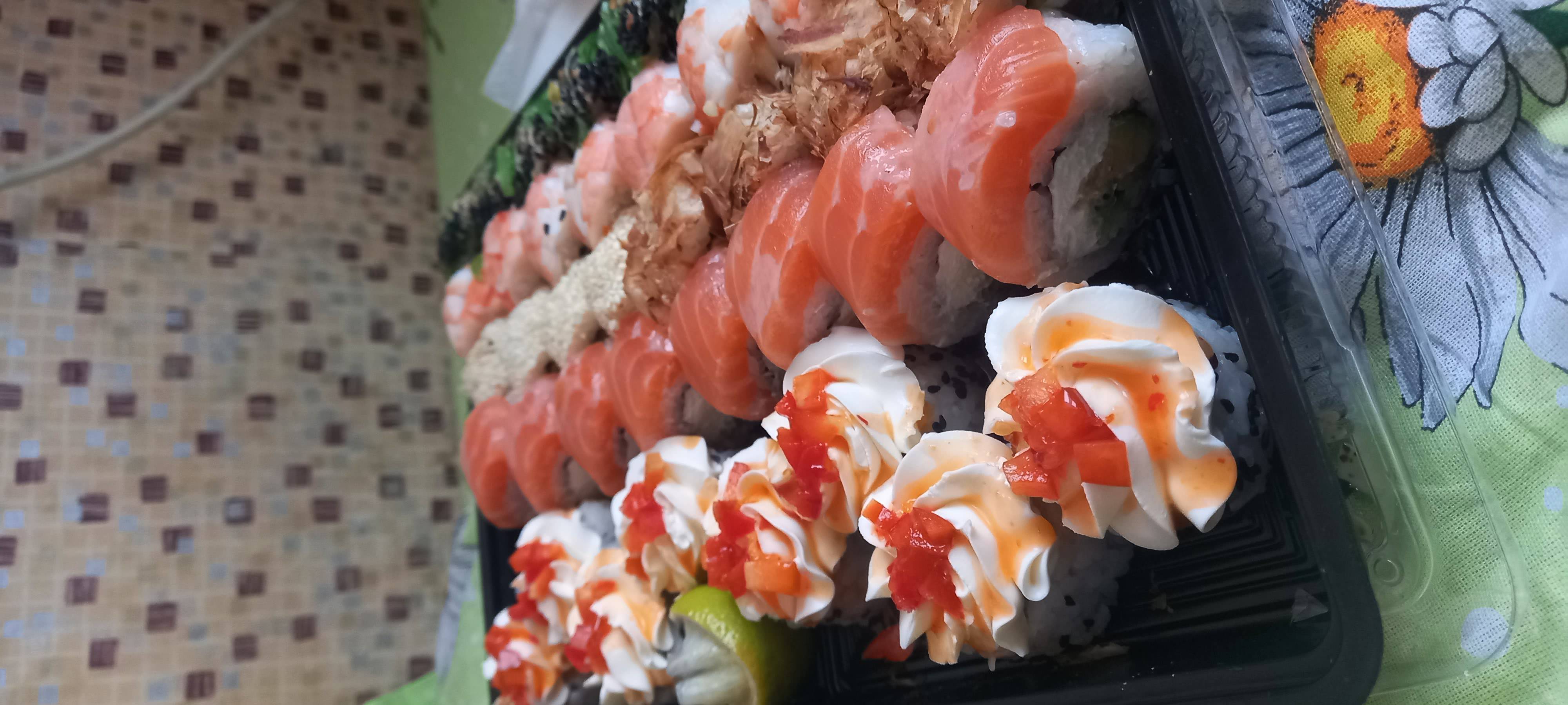 Все супер! Доставили в течение часа, как и обещали. Сет «Виктория гранд». Роллы обалденные: очень много сыра, рыбы, всё свежее и вкусное. Отдельное спасибо за акционное предложение. Сладкий ролл - это что-то))