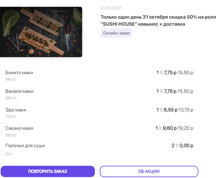 - Промокод дает право на скидку до 53% на суши-сеты от "SUSHI HOUSE"