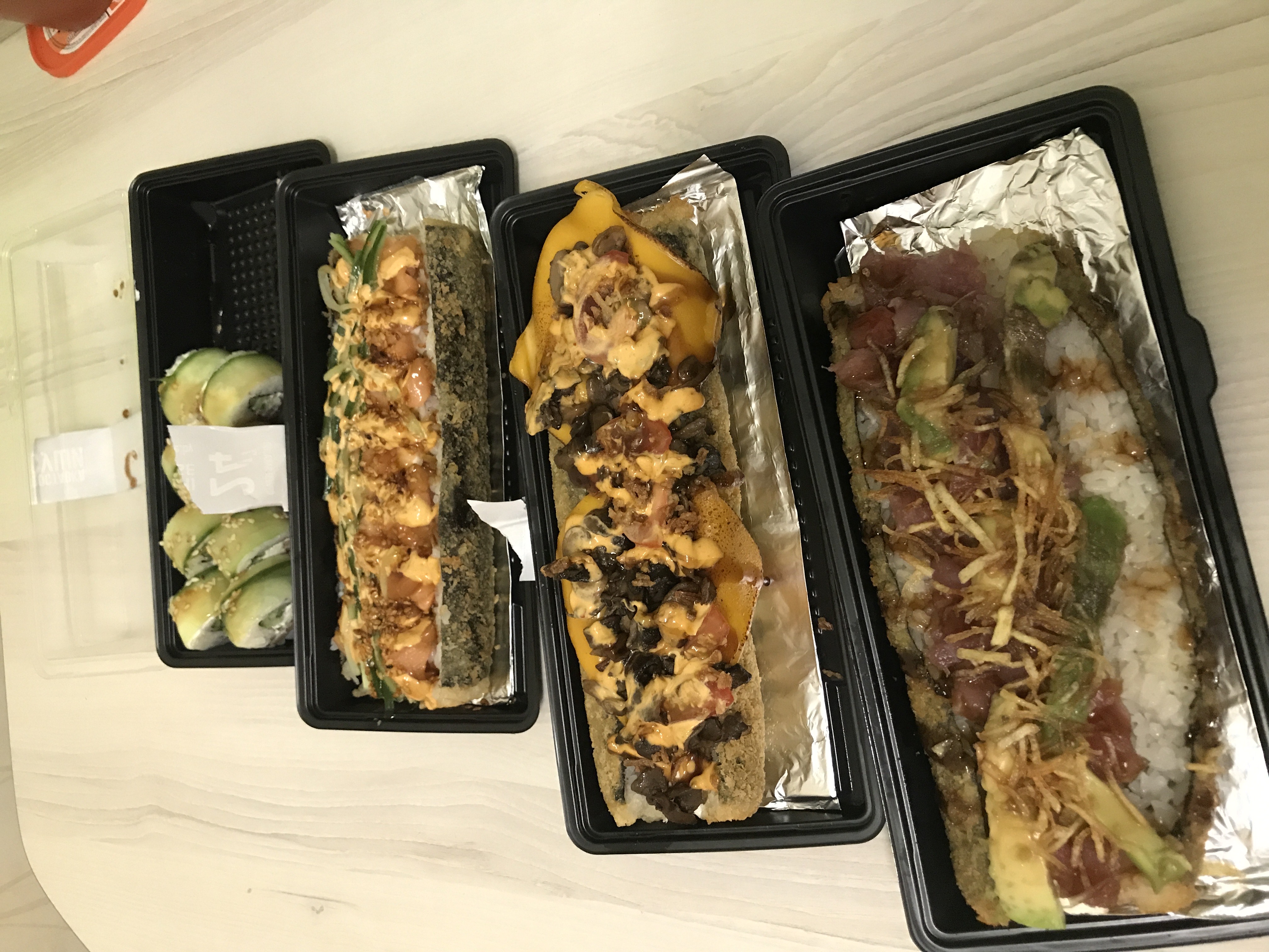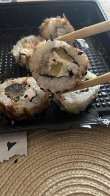 Заказали три сэта, один из них называется ханами, который есть вообще нельзя. 🤢 От ролов воняет рафинированным прогорклым маслом на котором уже второй месяц жарят. Очень разочарованы. Жаль, будем заказывать в других местах.