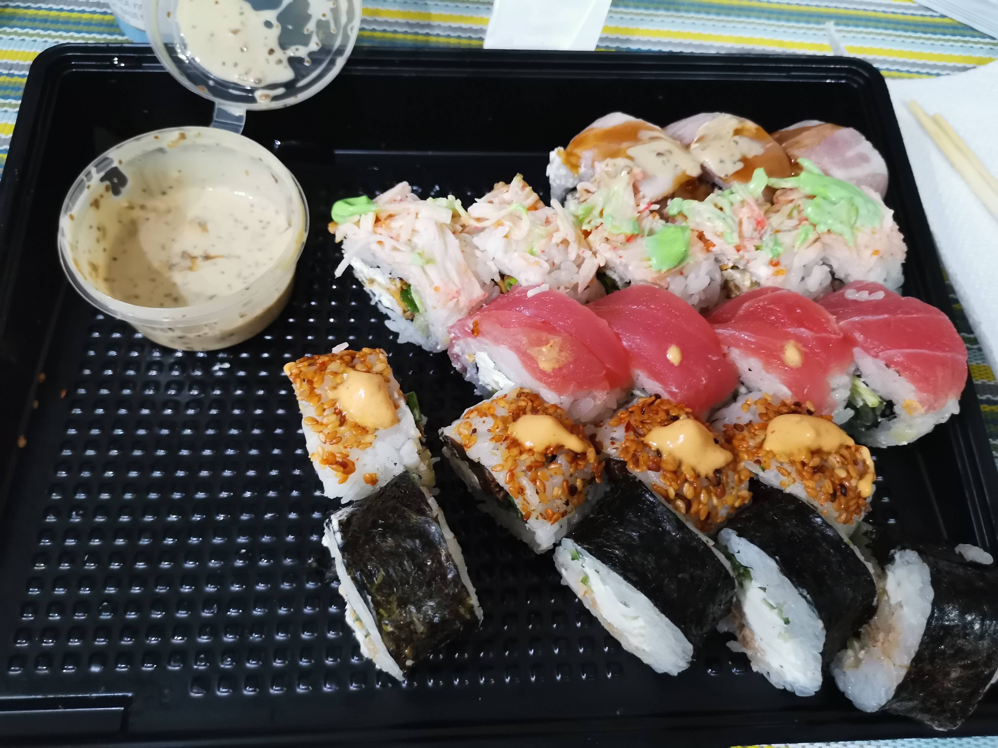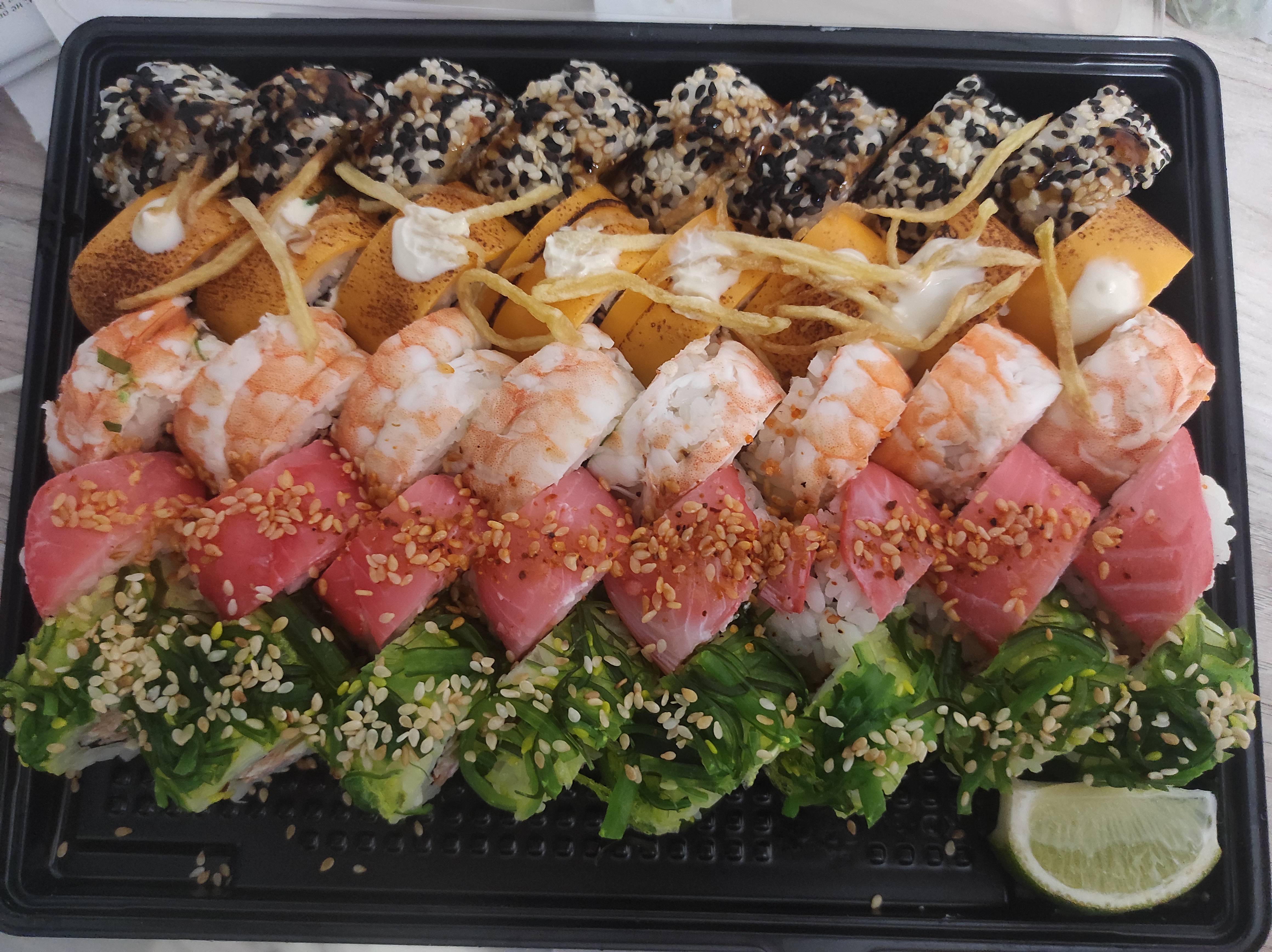 Впервые заказали здесь. Сет Ямакаси. Самовывоз из Титана. Ооочень всё вкусно, всё свеженькое!! Сфоткала пока всё не съели)) будем заказывать ещё!!!
