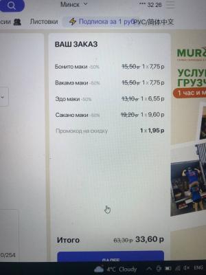 сделали заказ онлайн, брали в основном сладкие роллы. Через онлайн форму заказа есть скидка на них 50 %. Перезвонили и сказали, что сладкие роллы не учавствуют в акции (хотя через онлайн форму можно сделать заказ с этой скидкой).