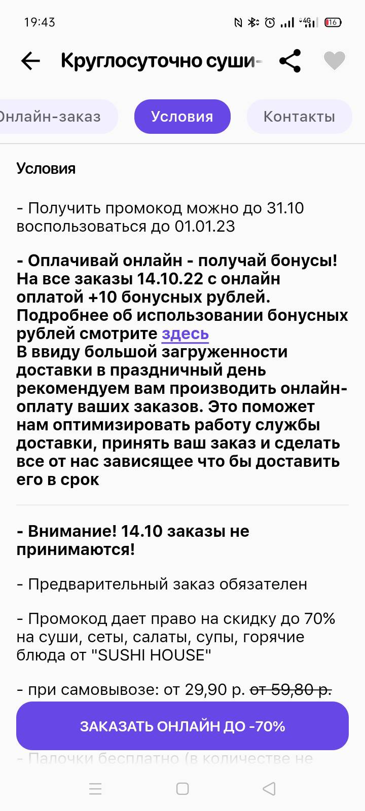 - заказ доступен только при онлайн оплате
