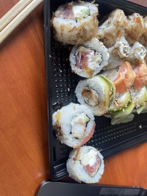 Идзуми сет заказали сегодня. В предыдушем отзыве уже все описали. Сухой, не вкусный, не свежий, имбирь горчил, соевый соус слишком соленый, хотя заказывали слабосоленый. Итог: выкинули.