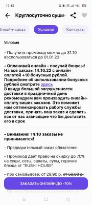 - Промокод дает право на скидку до 53% на суши-сеты от "SUSHI HOUSE"