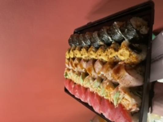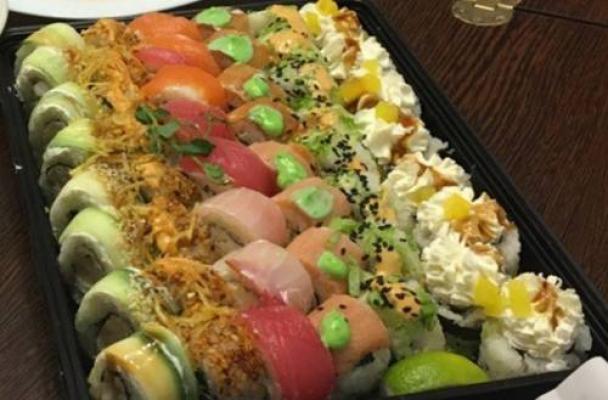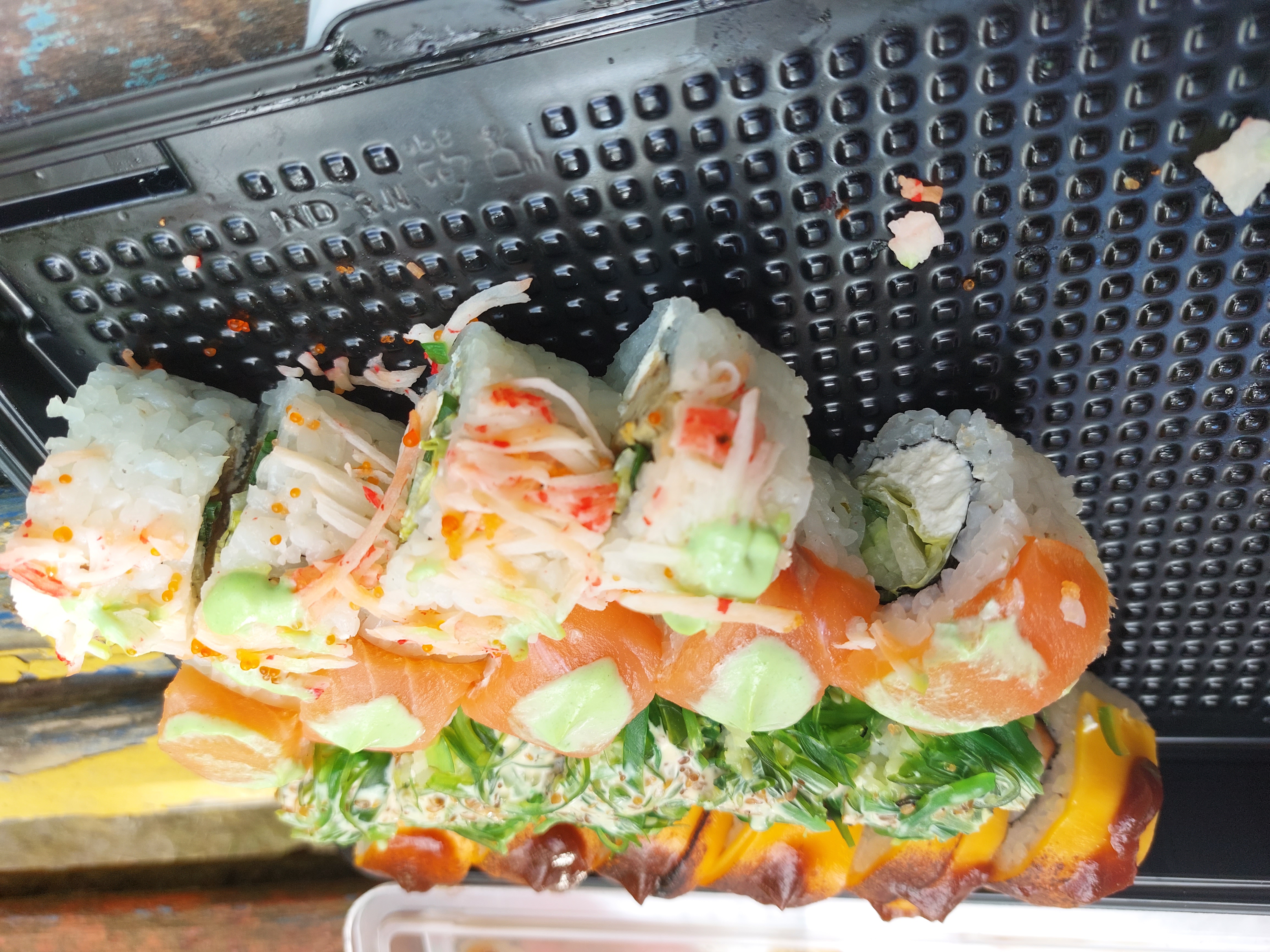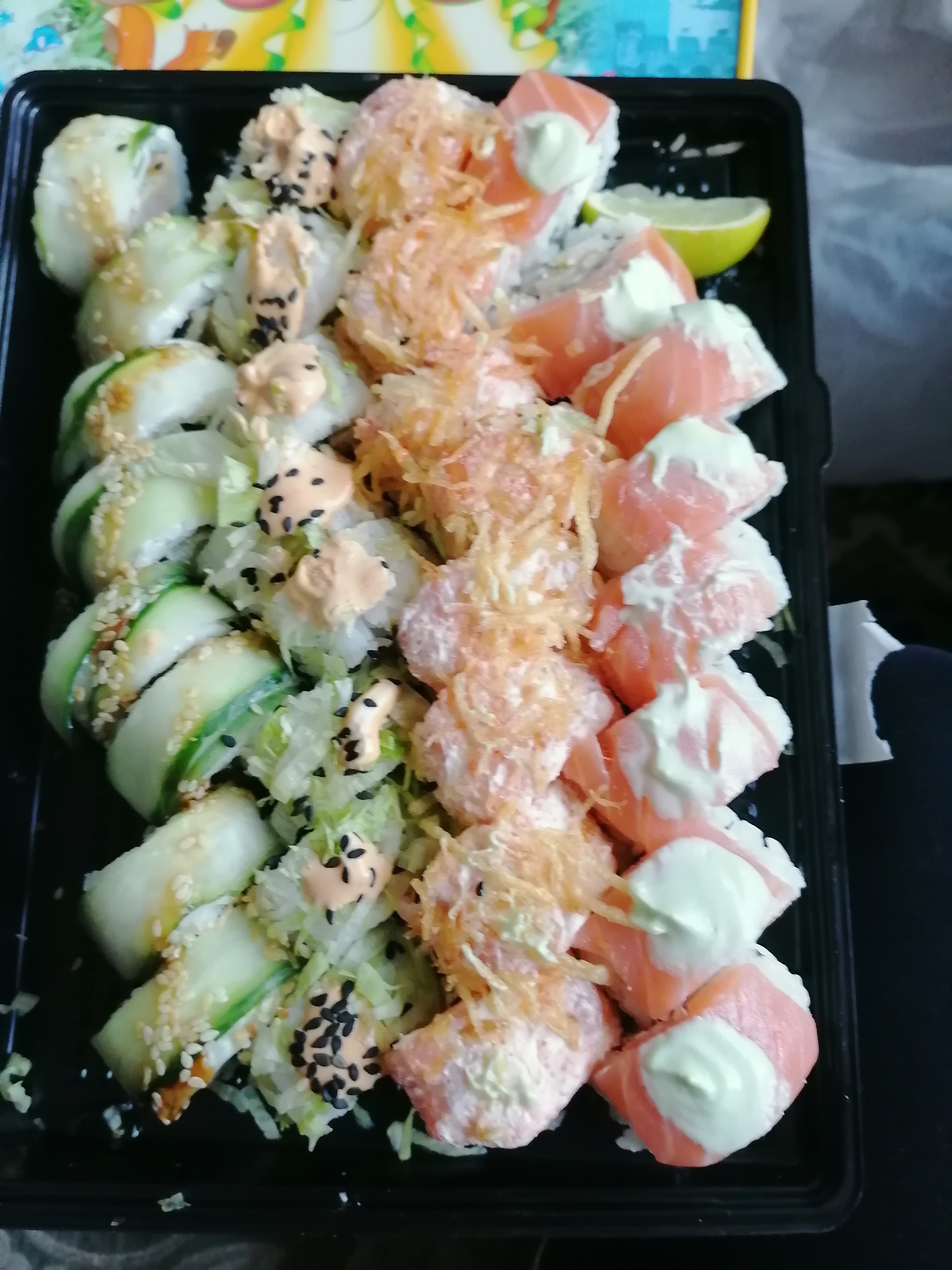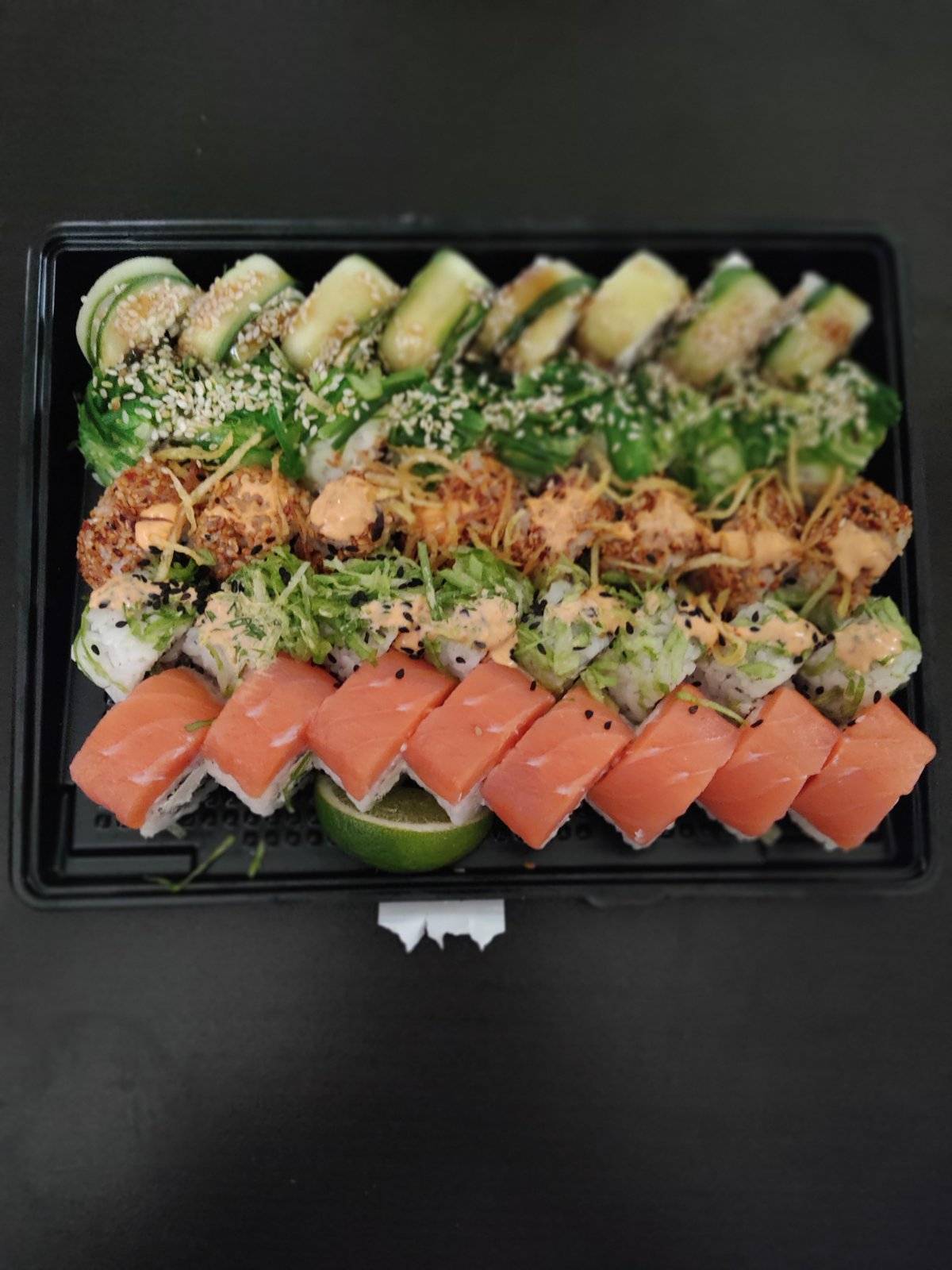 На фото слой лосося. Быстро приготовили и привезли. Было вкусно.