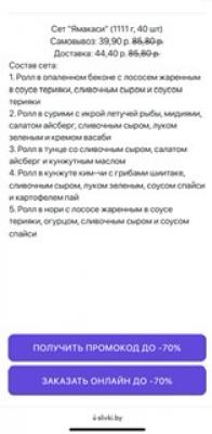 - Промокод дает право на скидку до 71% на сеты от "SUSHI HOUSE"