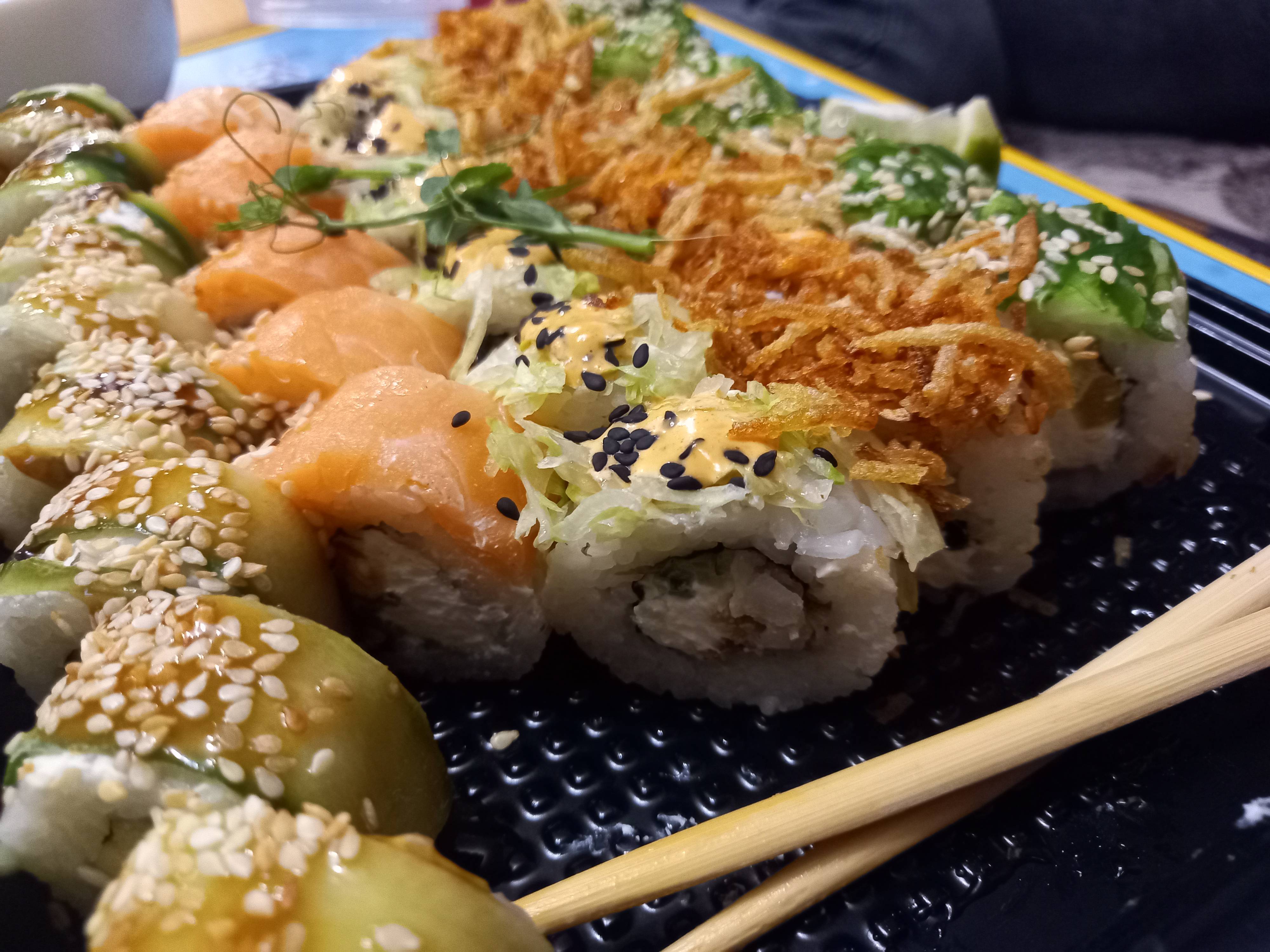 Ужасные суши, сет Удзуми, рыбы нет вообще, кроме филадельфии. Слов нет это назвать вкусным сетом. Лук внутри вместо рыбы( тебе и жареный и сырой). Короче рис с крем-сыром и дешманской начинкой и присыпкой. Посмотри на фото и ответь - твои ли это ожидания?