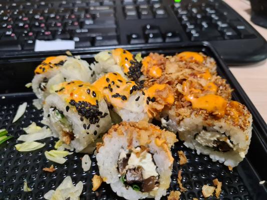 Так прежде чем заказывать сет, состав написан. А по фото не скажешь что не вкусно было, осталось пару роллов с грибами шитаке. И это тоже написано в составе.