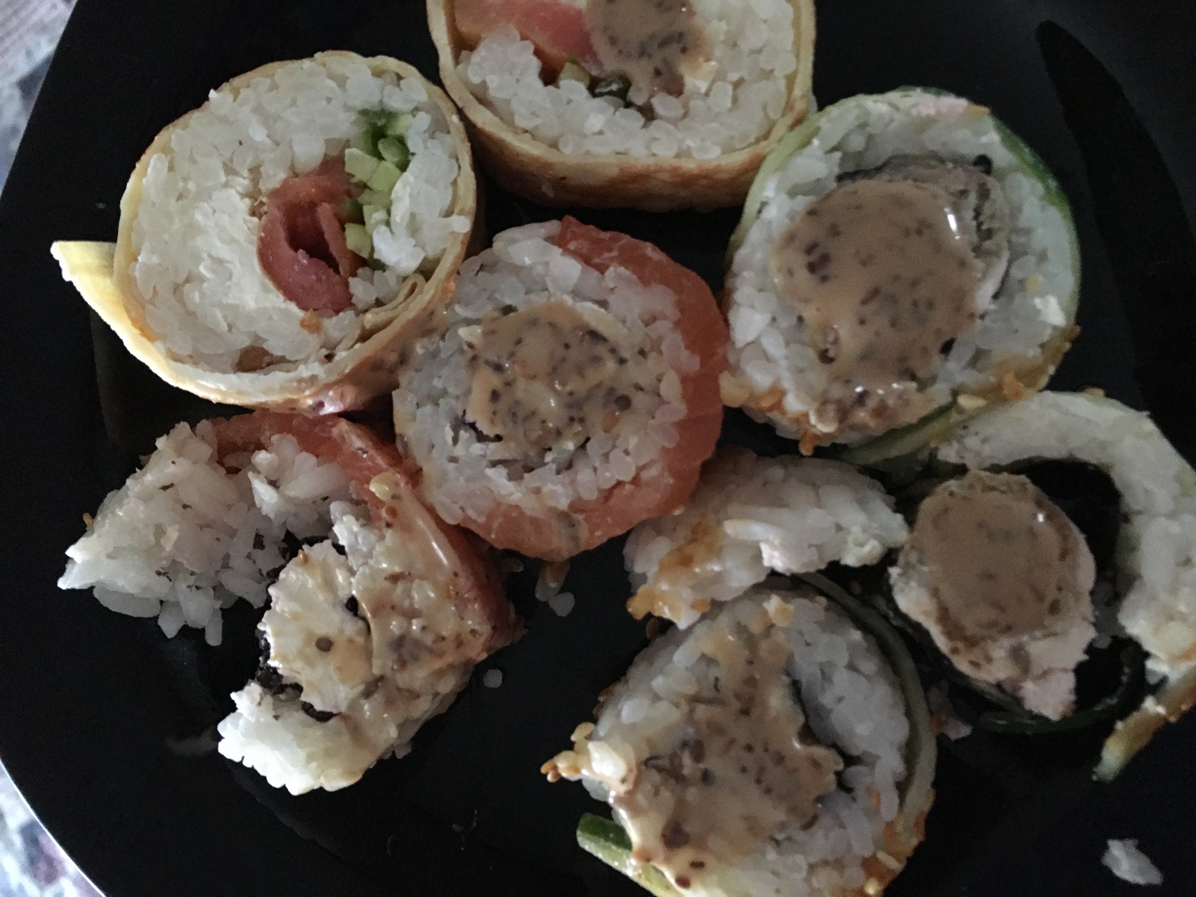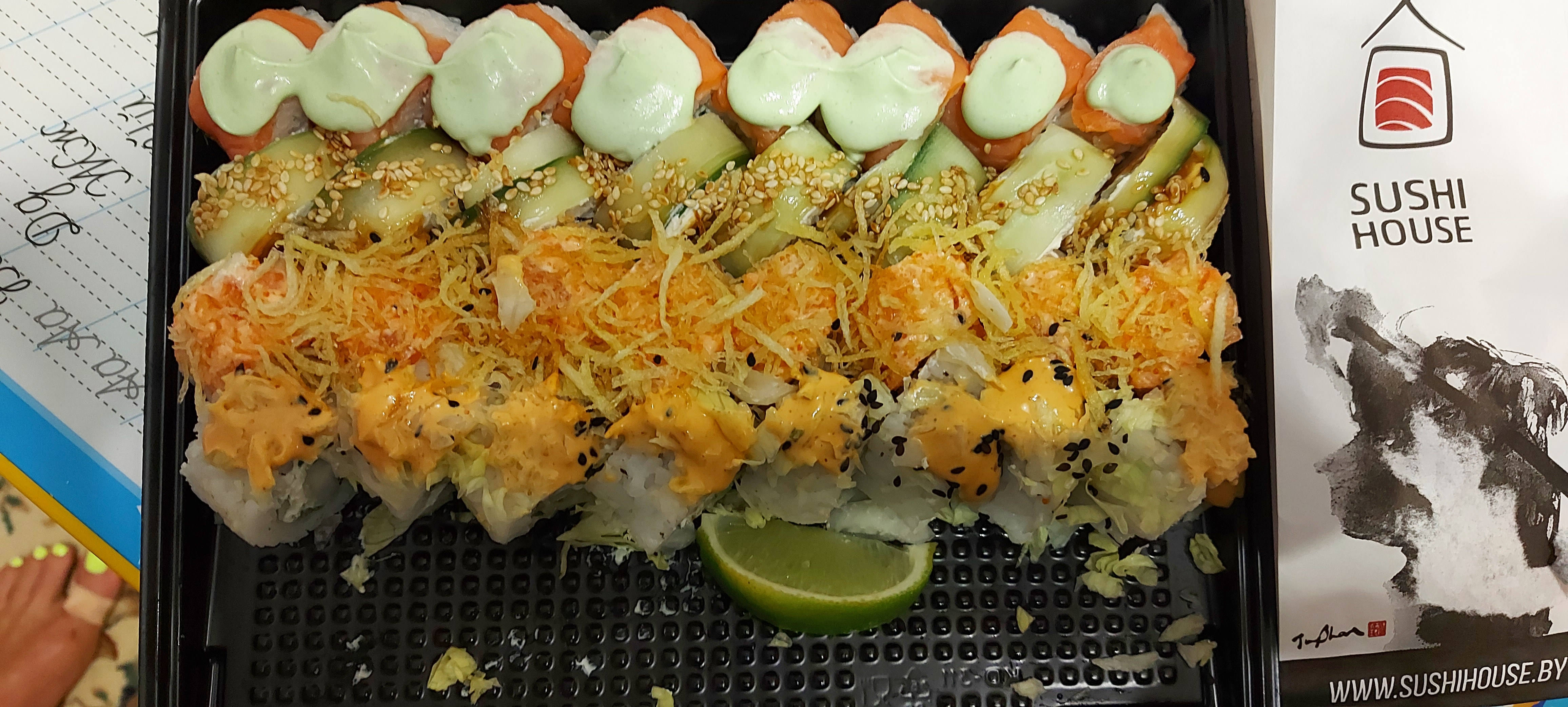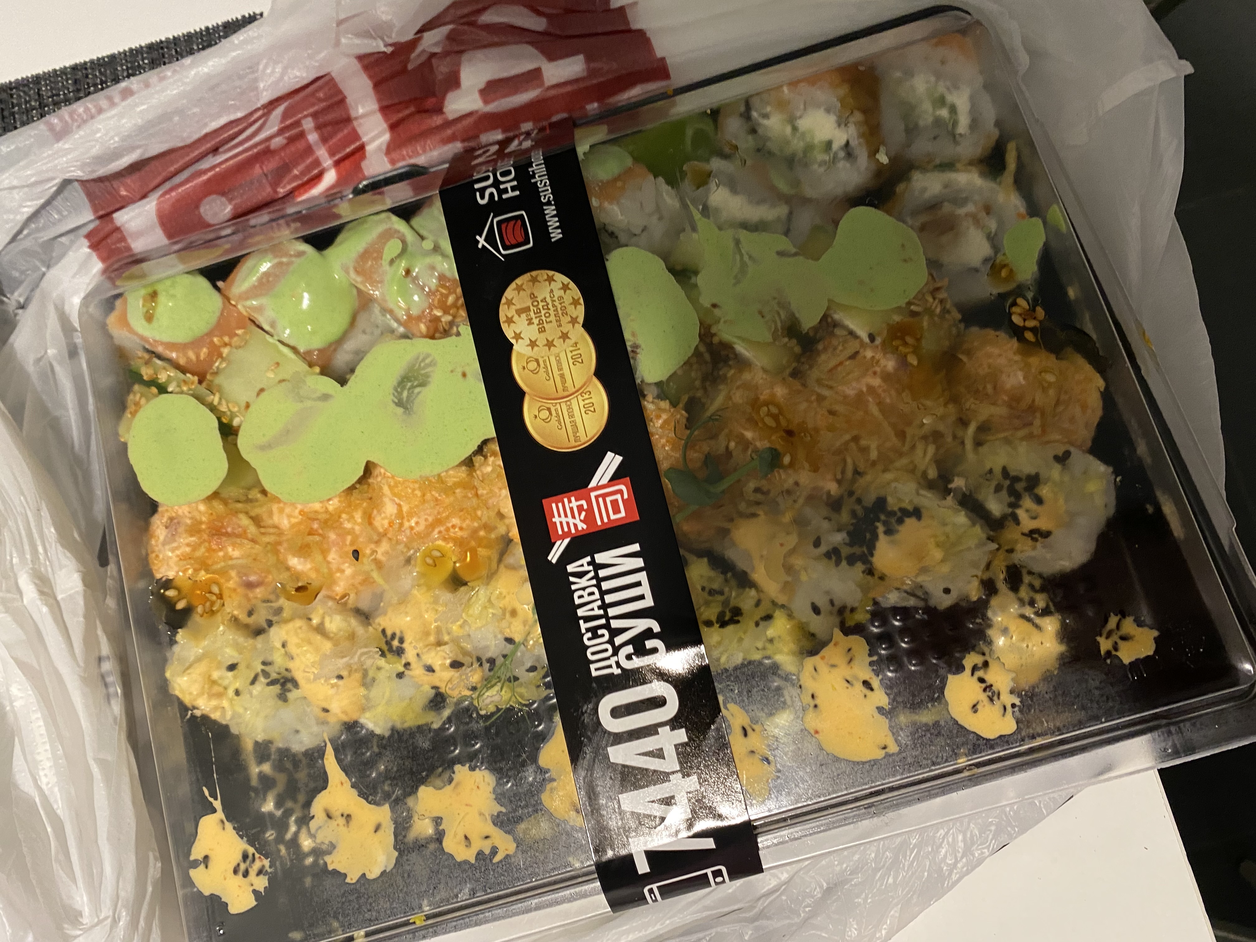 Что они туда накрутили не понятно . Все разваливаеться , рис сырой . Рыба пахла странно . Хотя я просила поставить контроль кач т. к заказывали для детей . Доставка была по адресу вовремя , курьер вежливый.