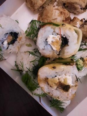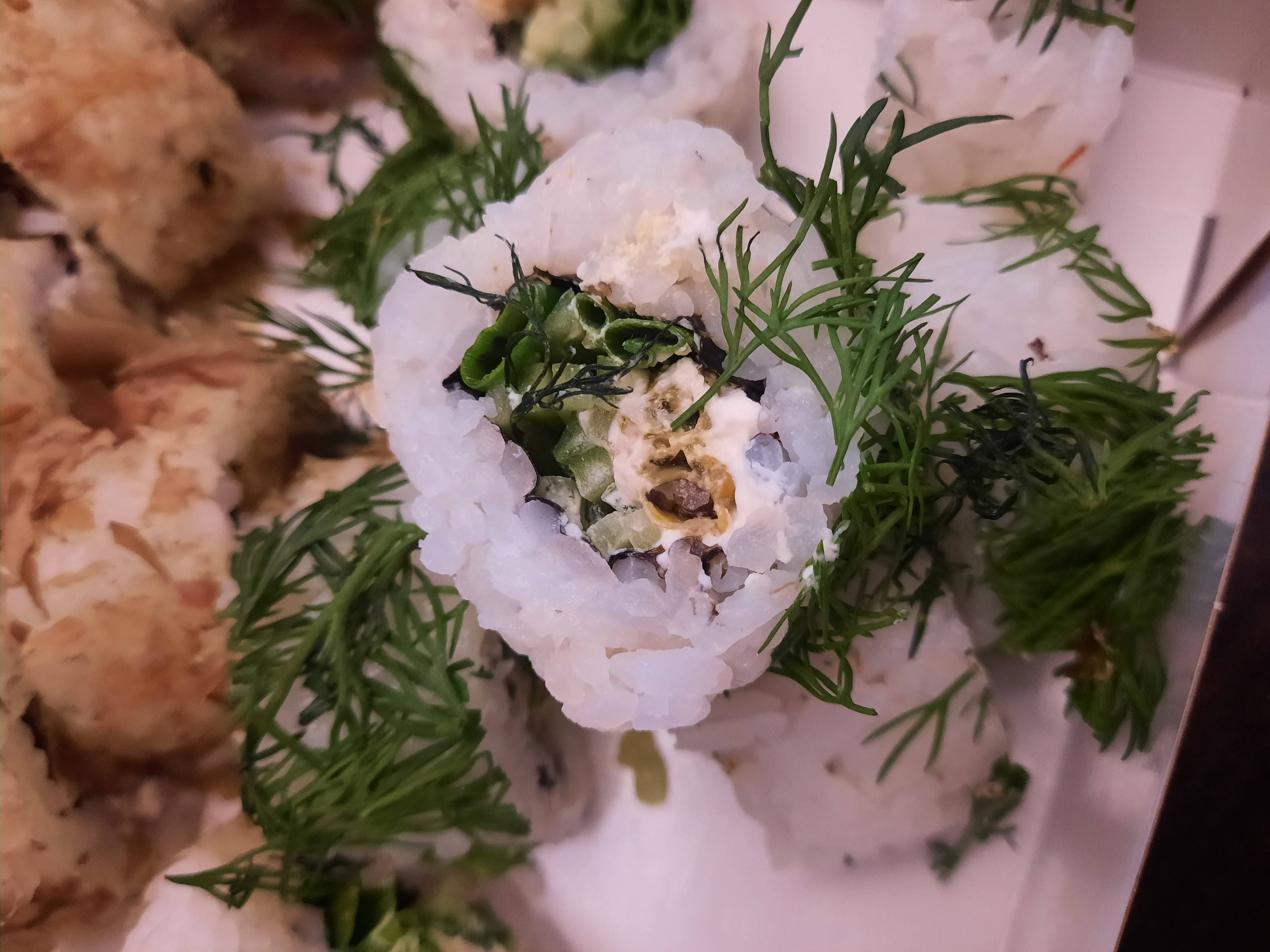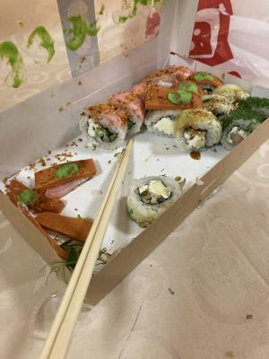Всегда быстрая доставка и очень вкусные роллы. Роллы скручены плотно и много начинки, супер.