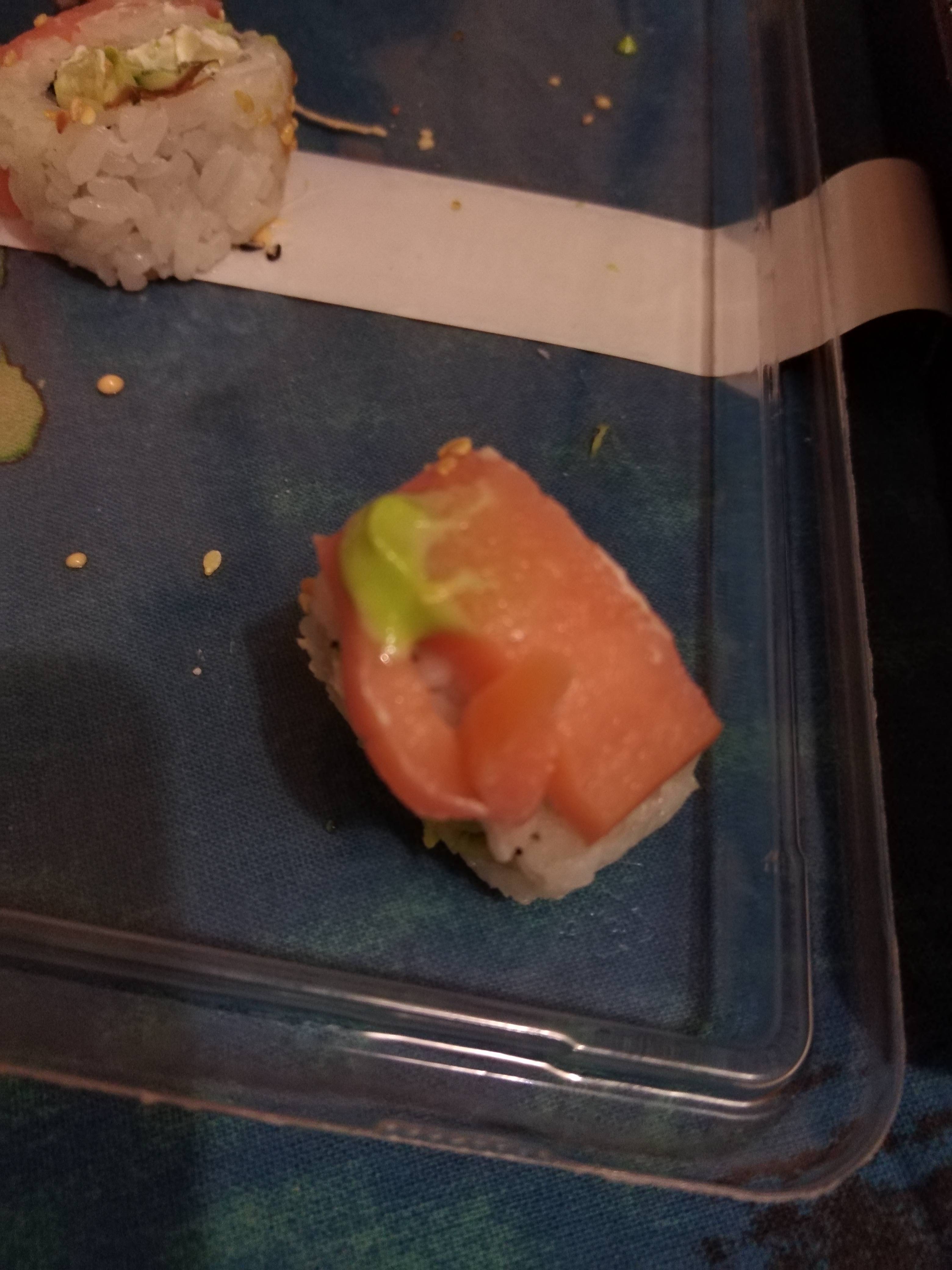 Здравствуйте! 26.02 заказывала 3 сета на самовывоз с Логойского тракта. Суши неплохие, понравились, НО в одном из роллов нашли кусок пластмассы!