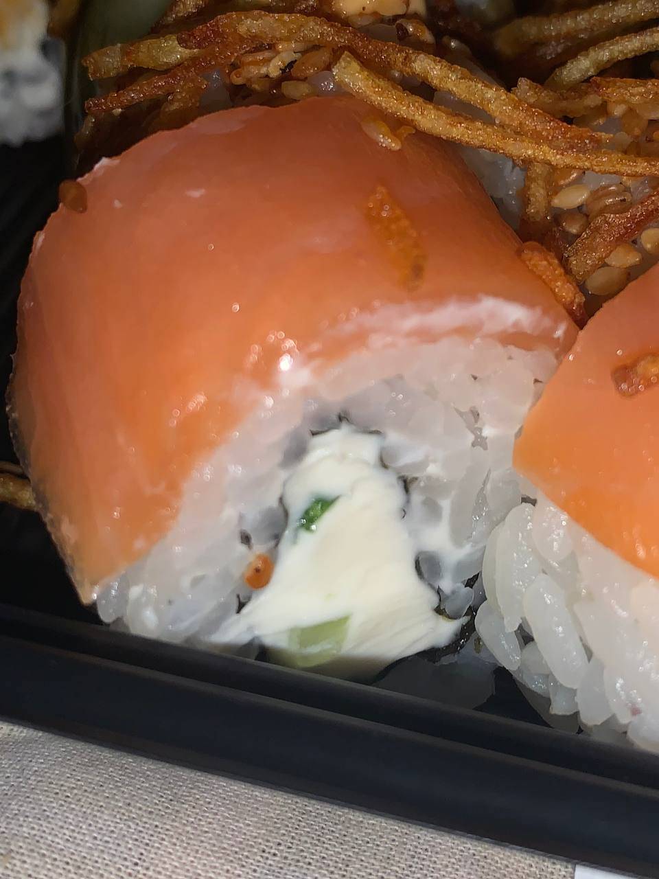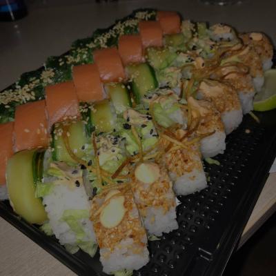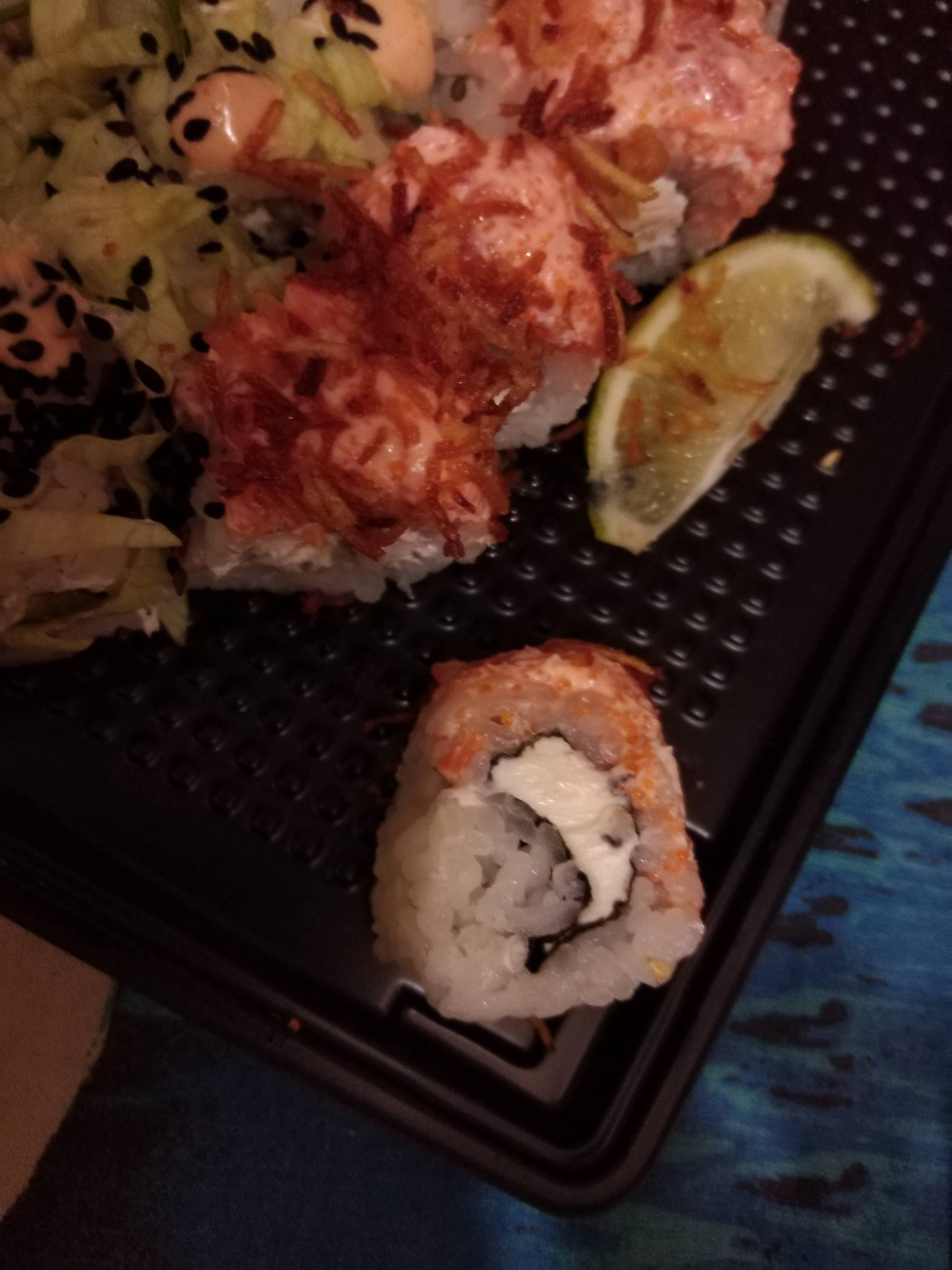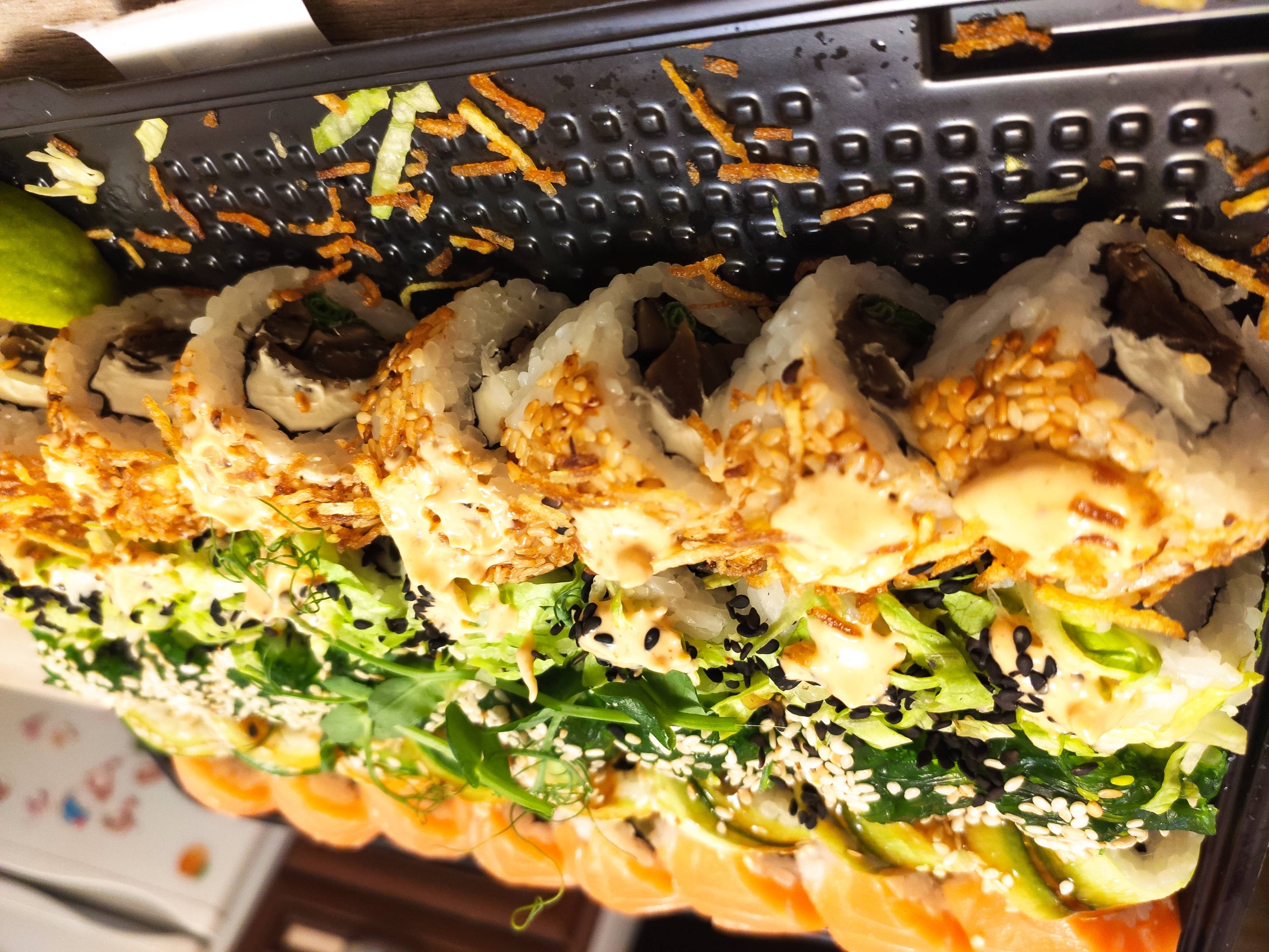 ⚠️⚠️⚠️Не заказывайте суши из этой доставки, заказывали дважды, с Жукова 44, приезжало скосяками, если первый раз косяк был в одном роле, то во второй раз(22.02.2022) они решили привезти невкусным теаккуратно скрученным с косяками весь сет Виктория гранд(48шт) комментариев по моей претензий со вчерашнего дня до сих пор не дали. Итог: суши есть не хочется, настроение испорчено в годовщину, сервис соответствует качеству суши, тоже на низшем уровне⚠️⚠️⚠️
