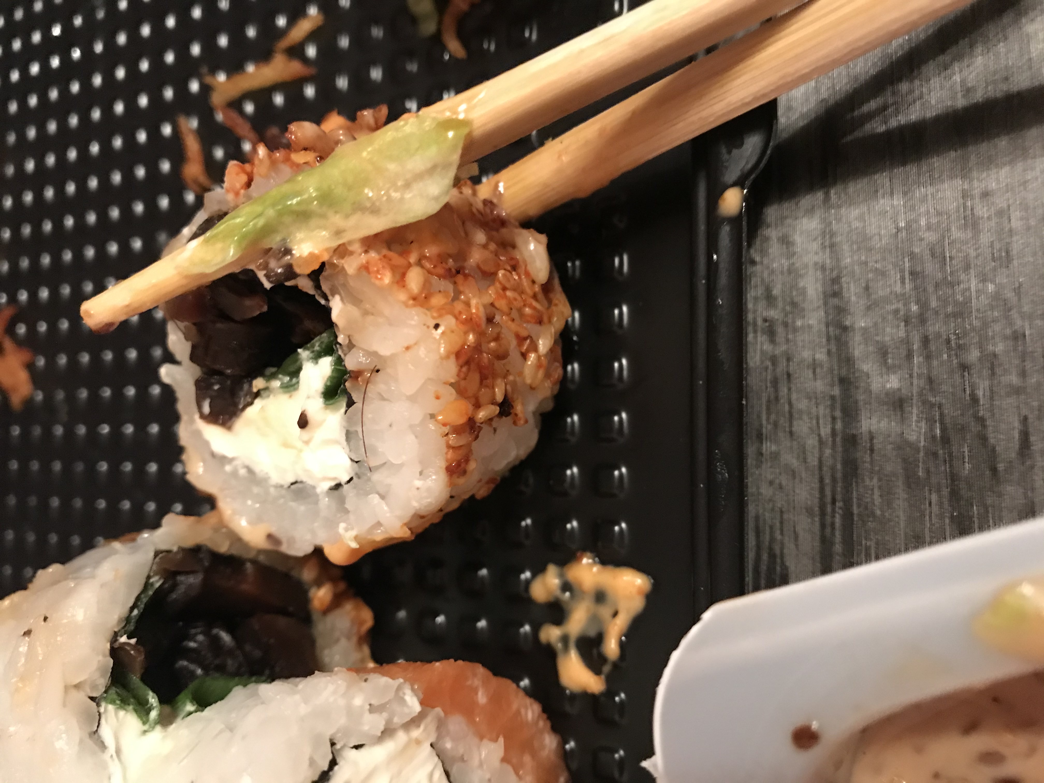 Заказали Идзуми сет и все было отлично до того момента, пока в одной из суш не заметили торчащий волос , расстроены(