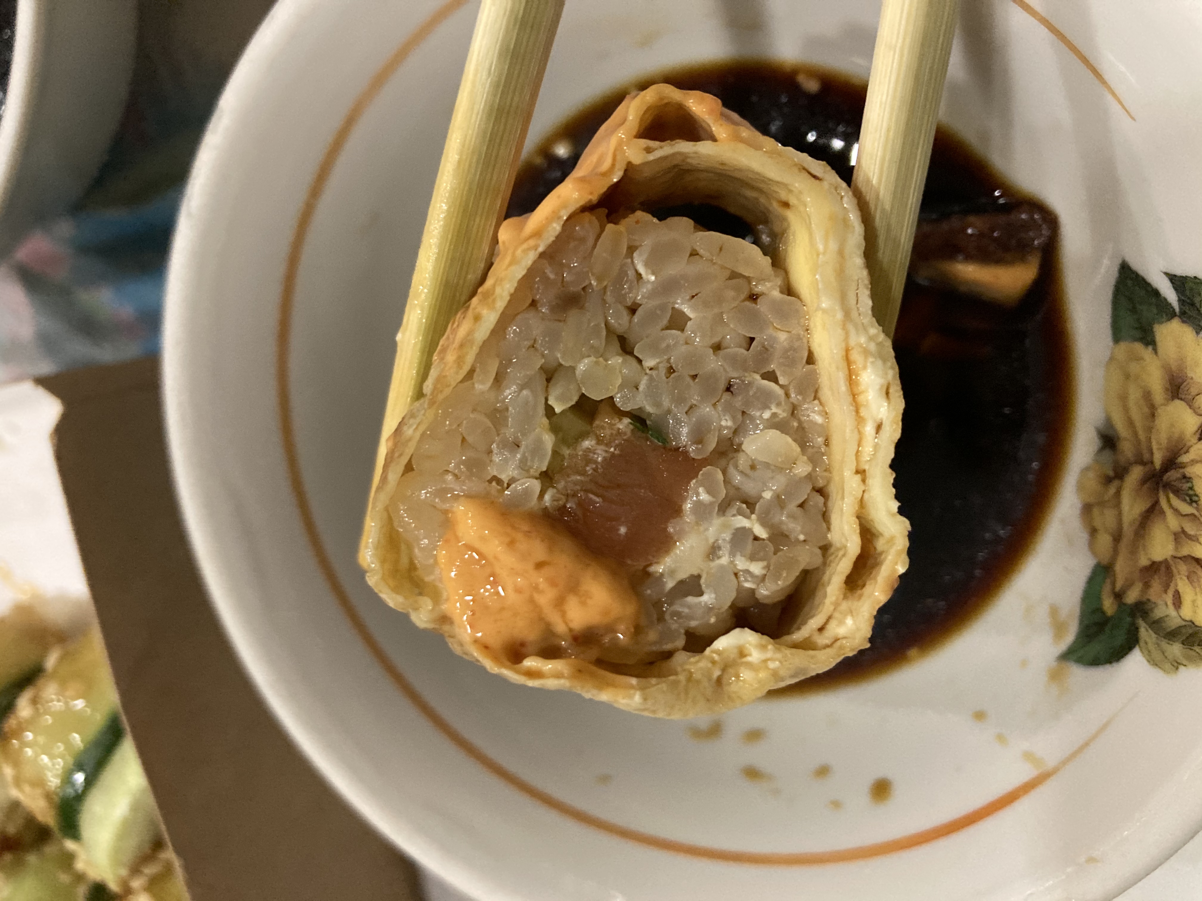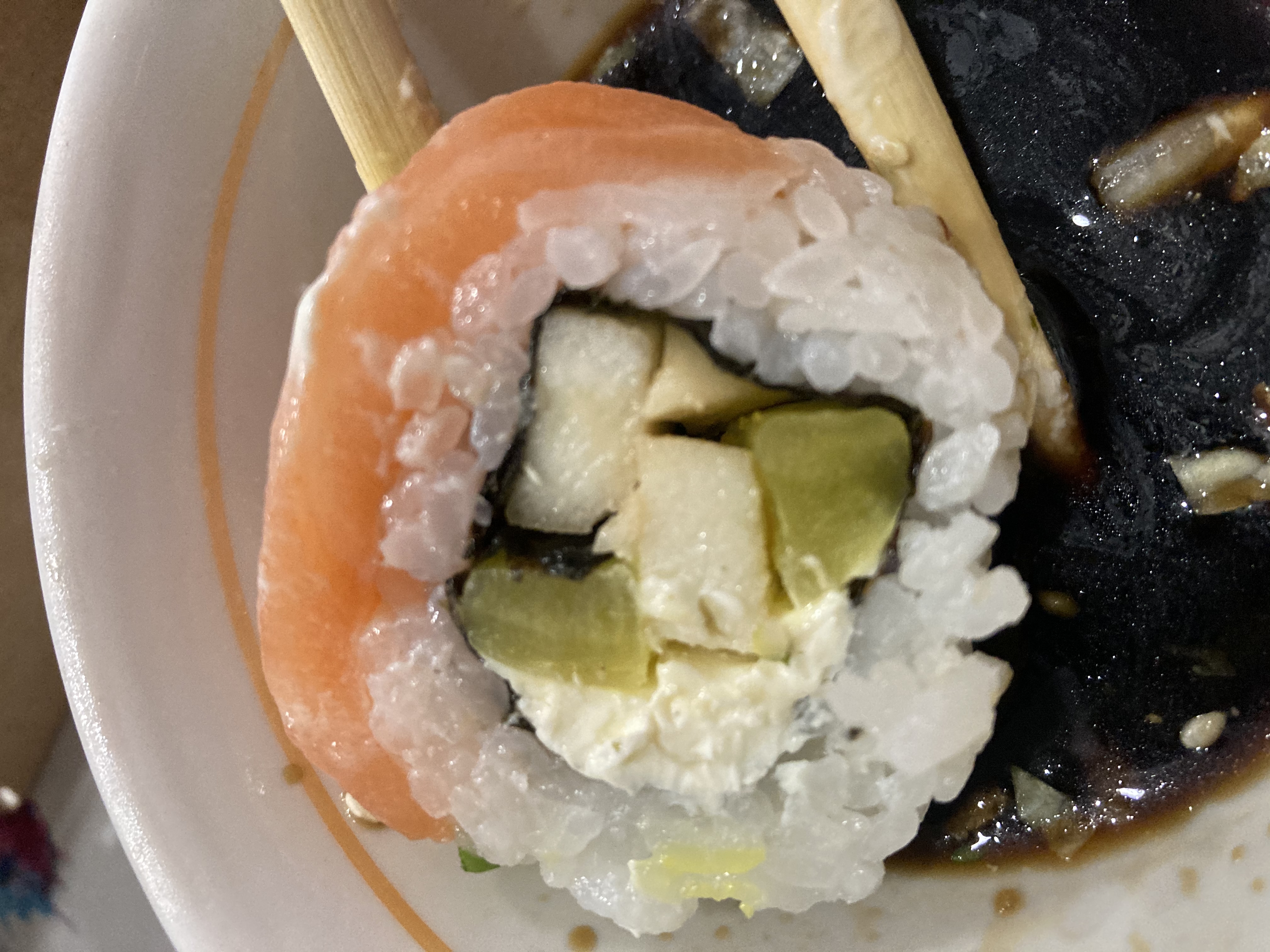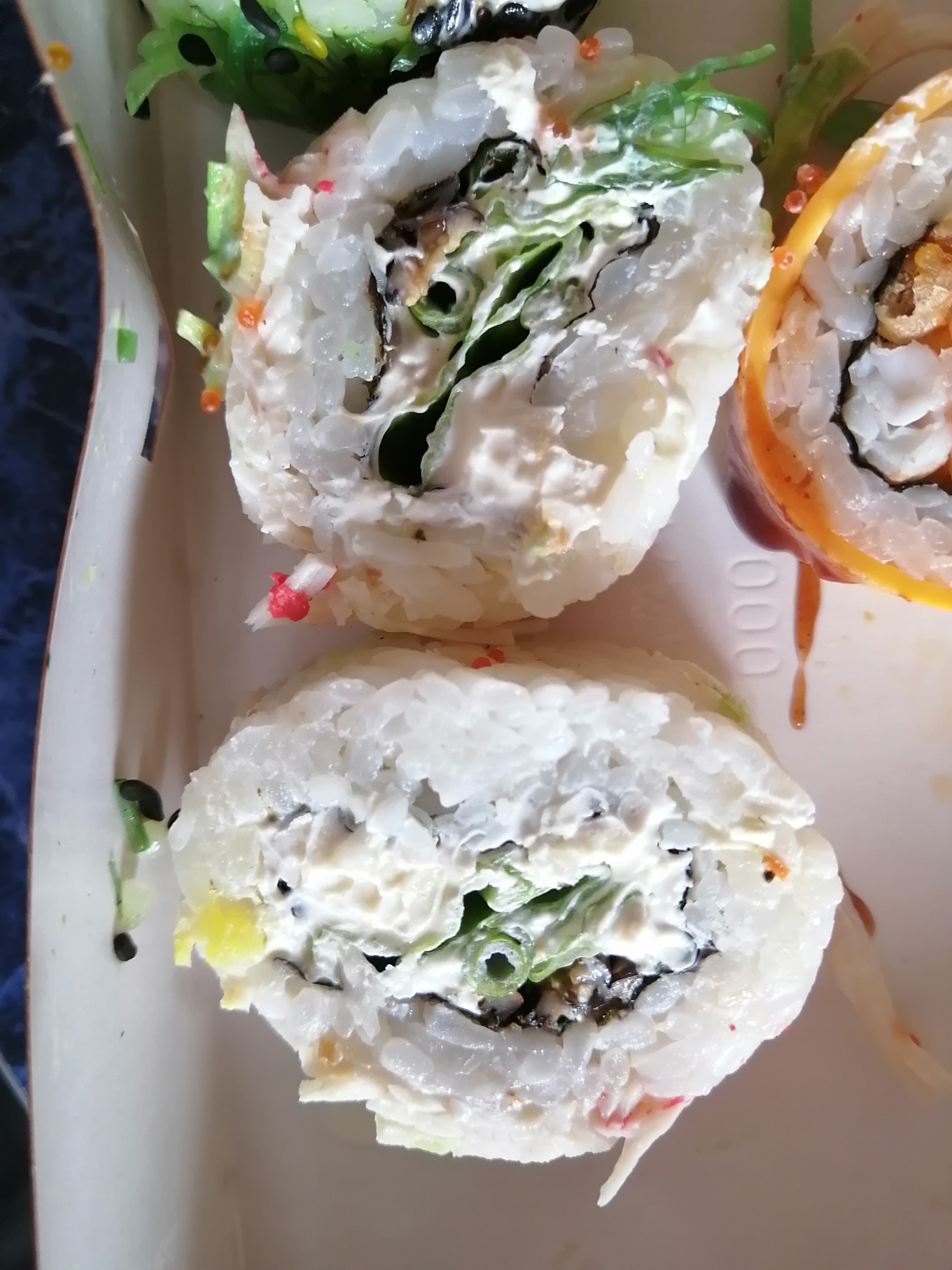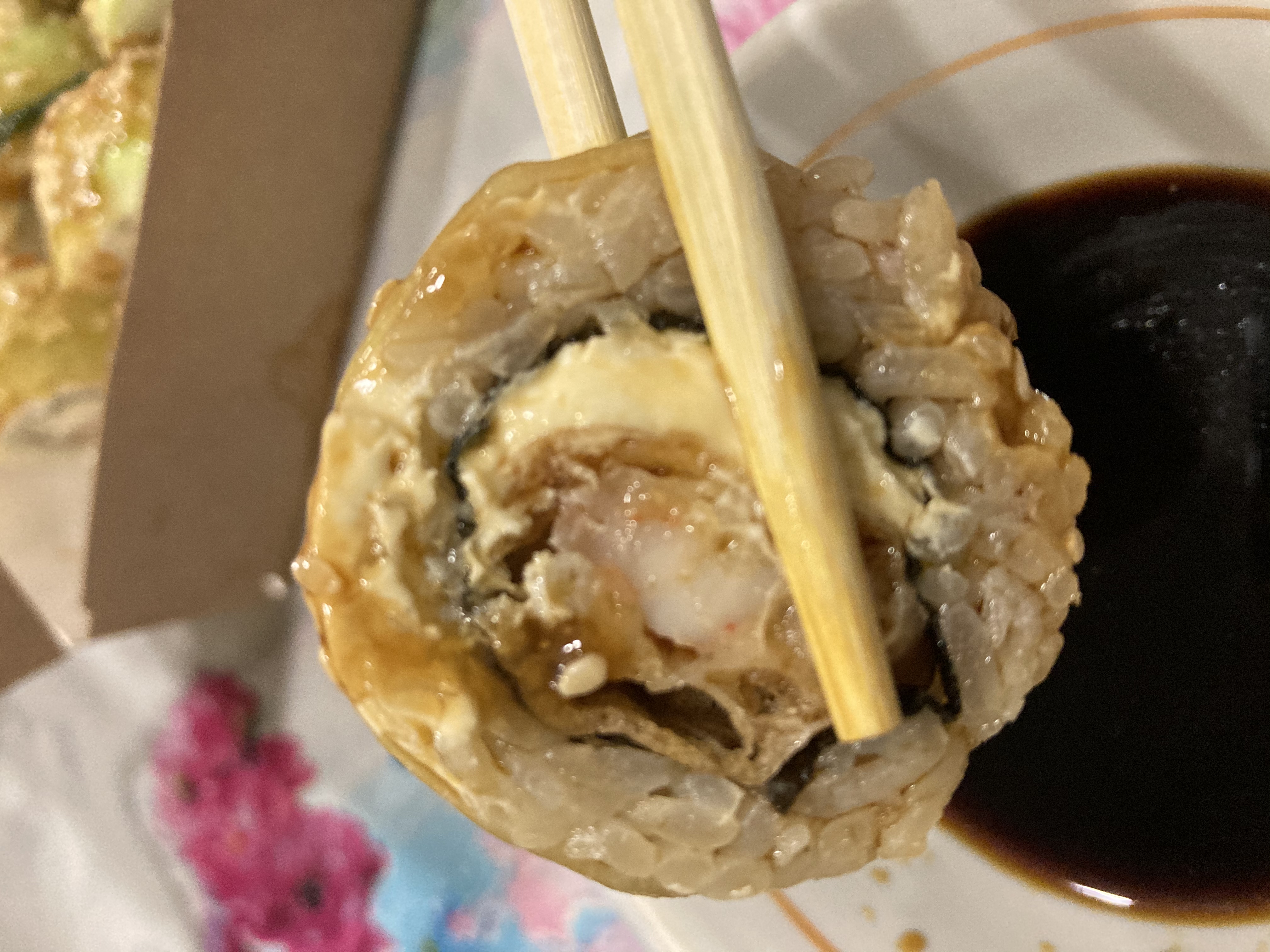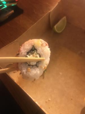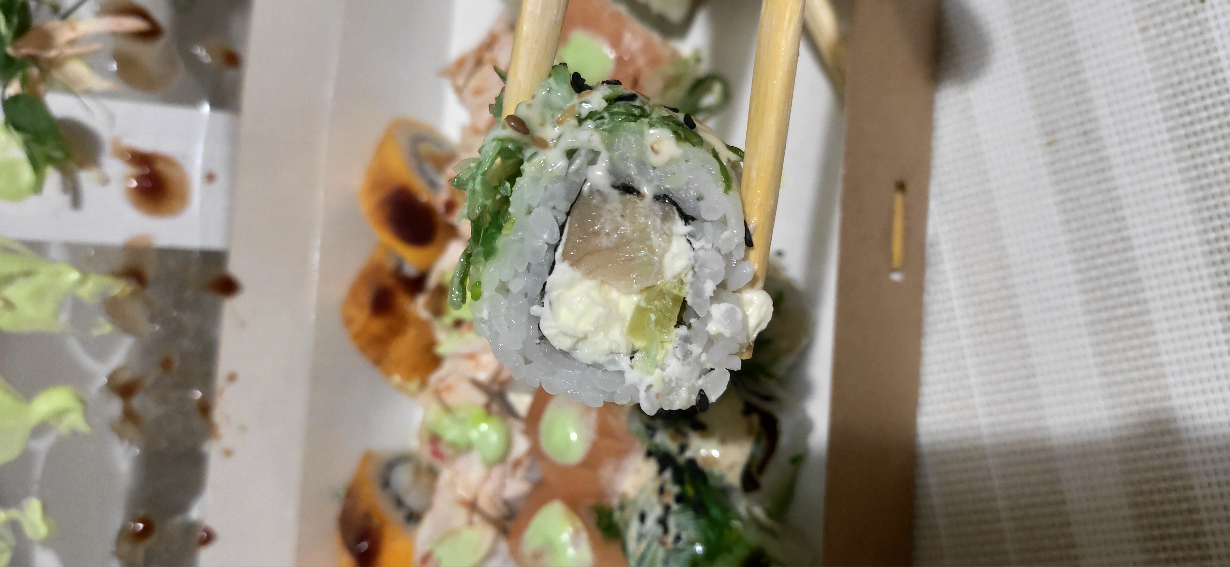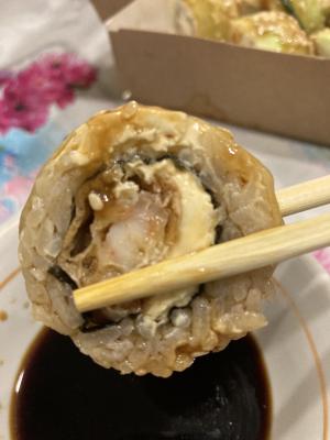 Взять палочками не возможно, разваливаются сразу. И ладно бы только это. Запах не приятный. Качество продуктов ужасное, кислые.