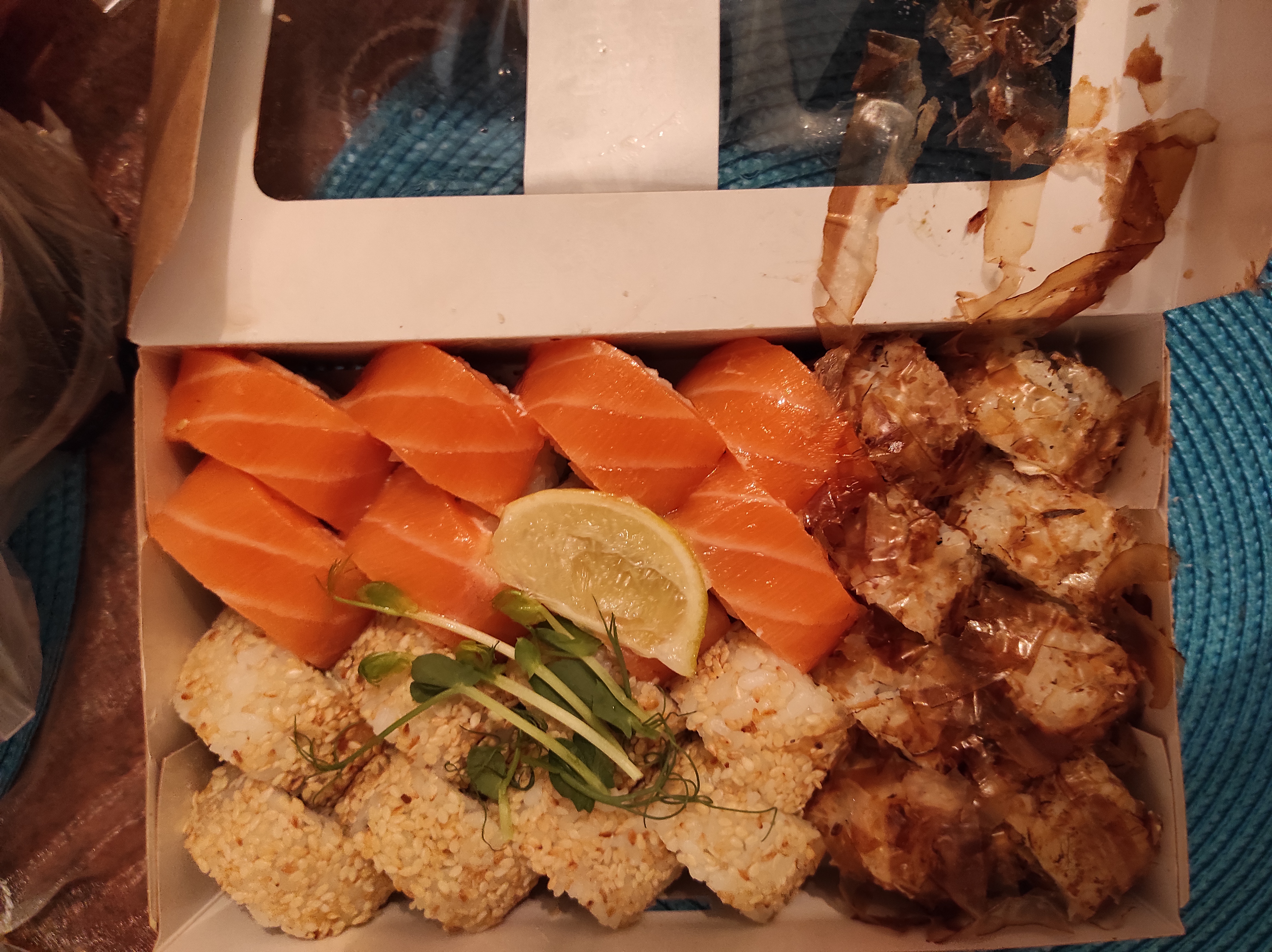 Часто заказываем, всегда хорошее качество! В этот раз заказали отдельно от сета порцию в стружке тунца с жареным лососем. Но внутри оказалось непонятно что, явно какая-то консерва, первое впечатление было что это вообще шпроты, но скорее всего конечно нет, но явно не жареный лосось. Очень разочаровали в этот раз.