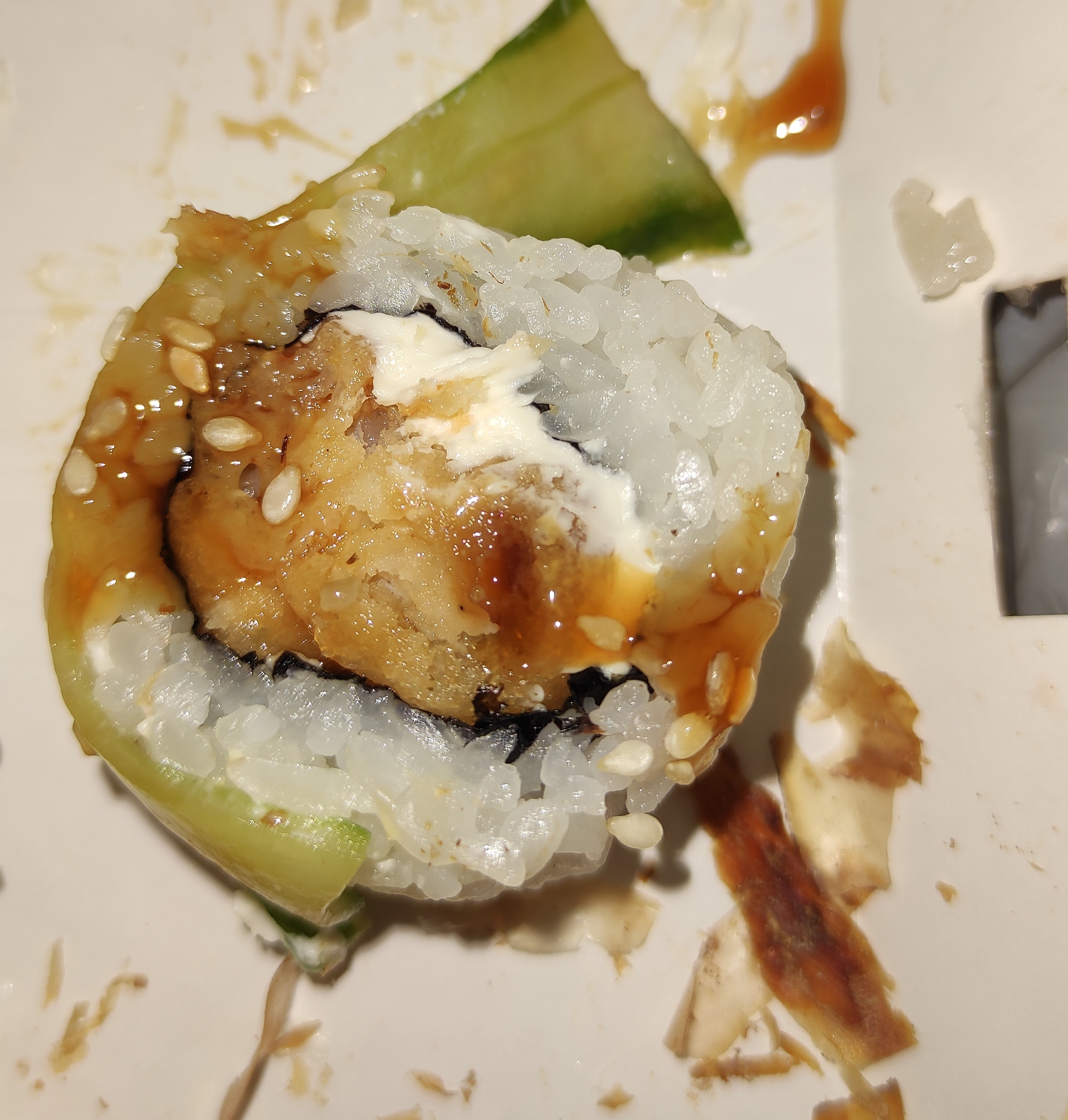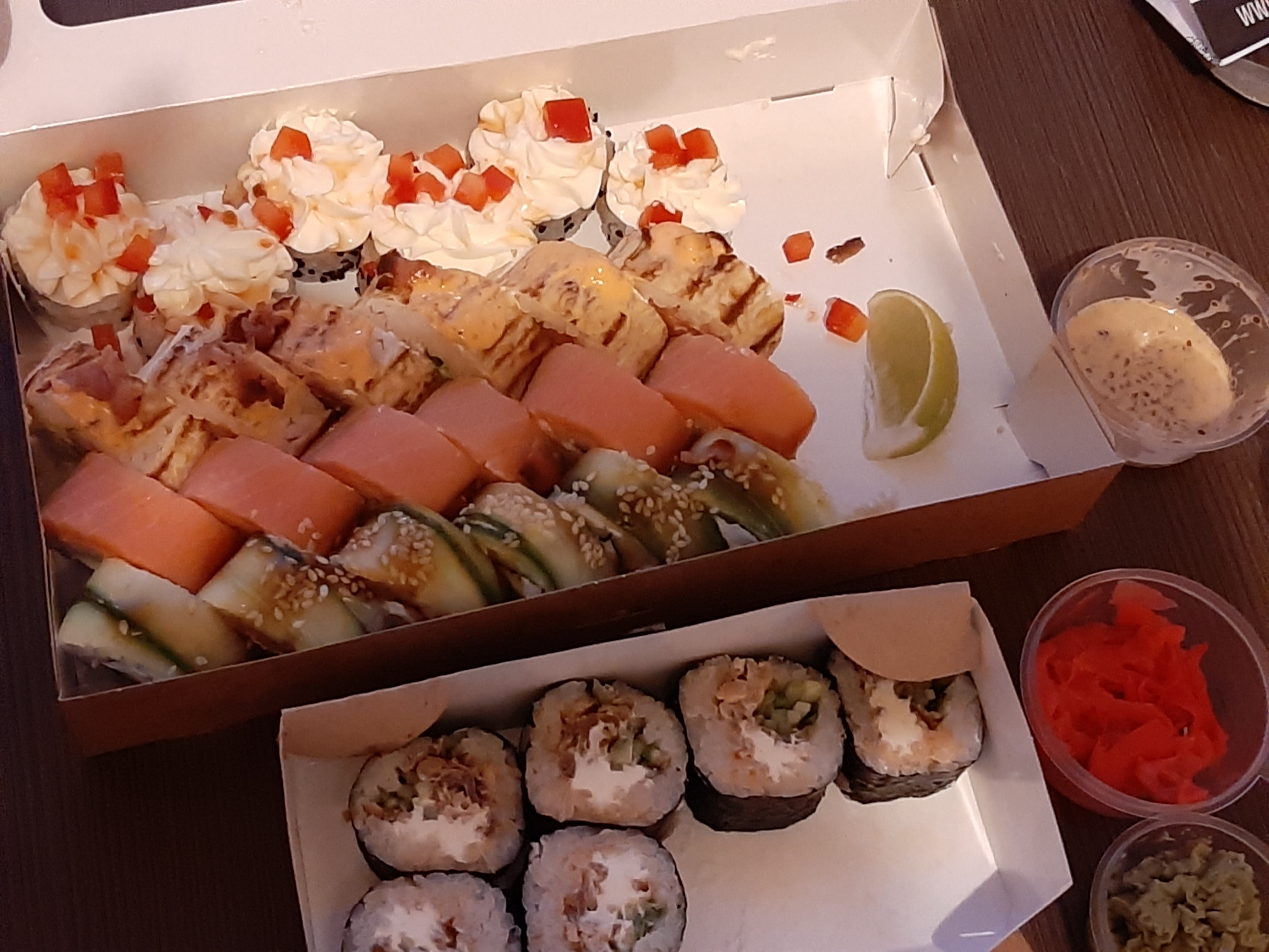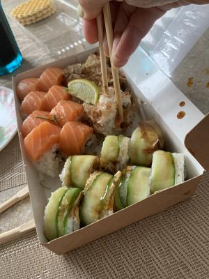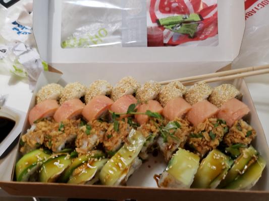 Я обычно не пишу плохих отзывов, ибо всякое бывает. Но это были самые невкусные суши, которые я ела, я даже позволю назвать их ужасными:( Они вообще не держали форму, а все суши были достаточно плотно прижать, поэтому пришлось вилкой подбирать, что развалилось. Когда их ела, было ощущение, что что-то несвежее, поэтому даже доедать не стала. Пишу отзыв, потому что такое не первый раз и даже не второй. Полностью разочаровалась в данном суши-баре. Заказывать в этом месте больше никогда не буду!