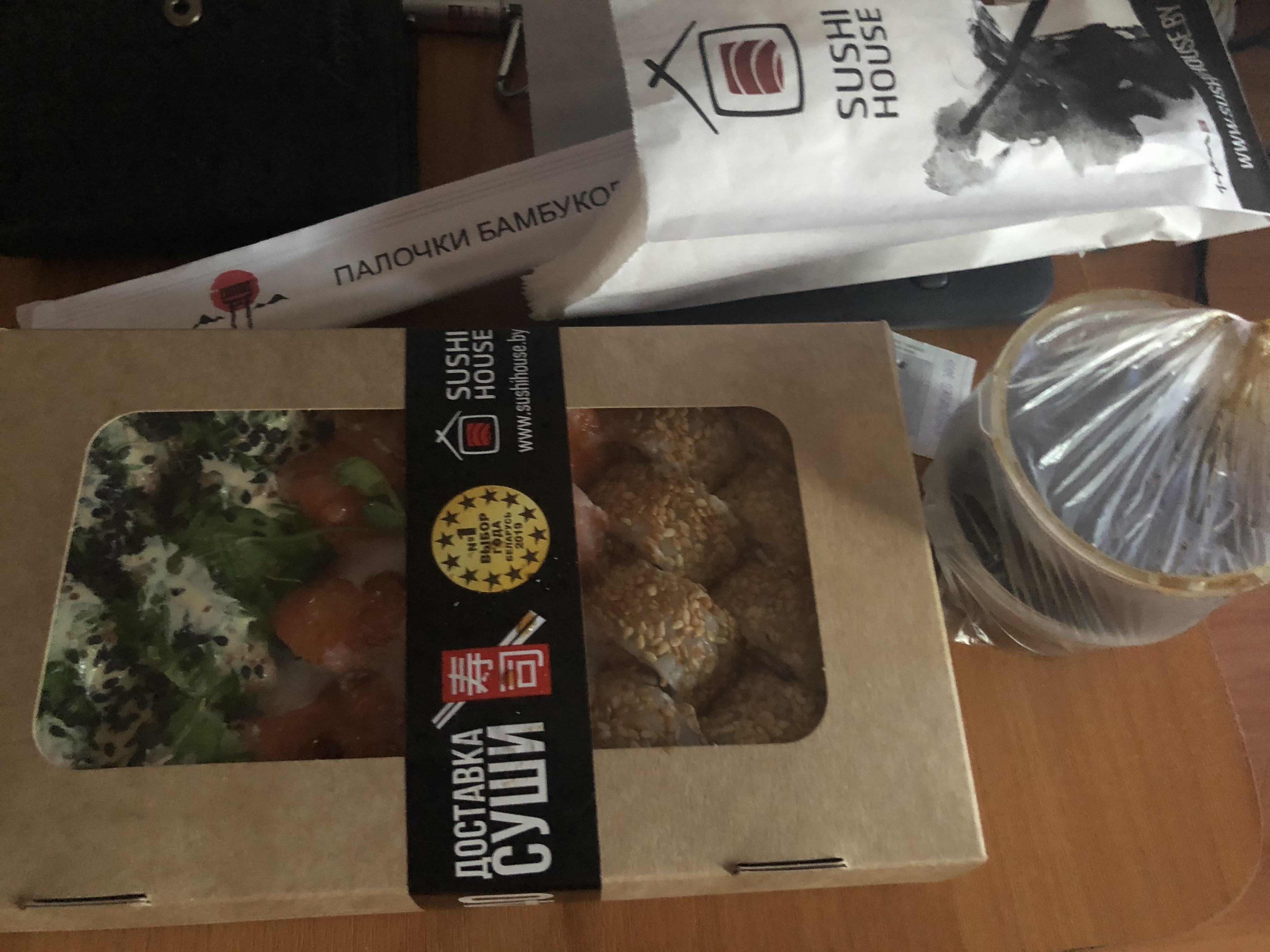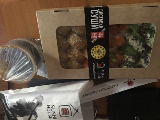 Доставка вовремя, всё очень вкусно! Благодарим, всем рекомендуем SUSHI HOUSE!