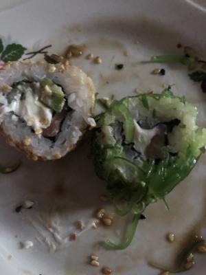 Да и рыба в каких-то ролах была, а в каких -то совсем малюсенькая... ну и еще было не очень приятно, когда курьер отдавал заказ весь прокуренный🙁извините не сдержалась.. и написала уж как есть...