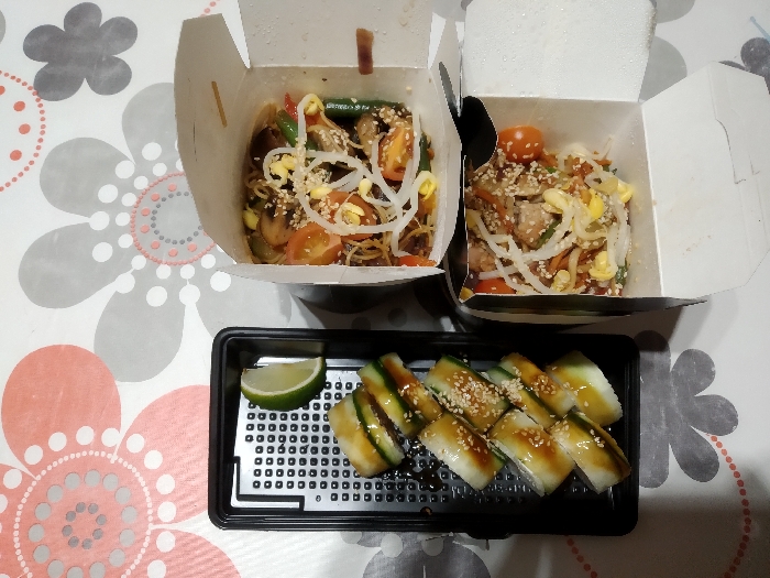 2 разных вока + ролл с креветкой ТОП