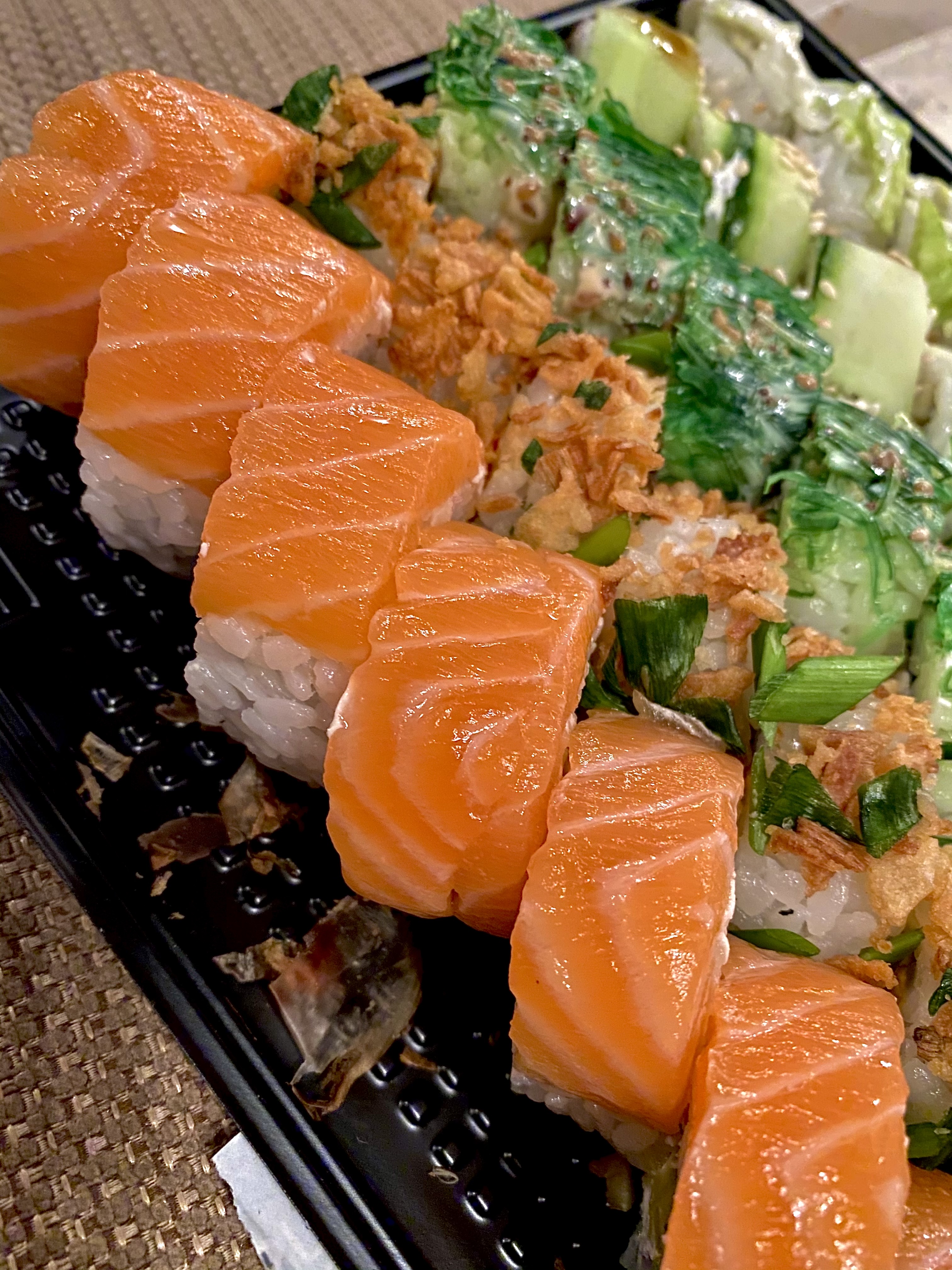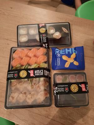 Суши очень вкусные!!!  Доставили на пол часа раньше 👍 Ещё и подарочки положили,  дополнительный сет и орешки)))  Рекомендую) будем заказывать только здесь