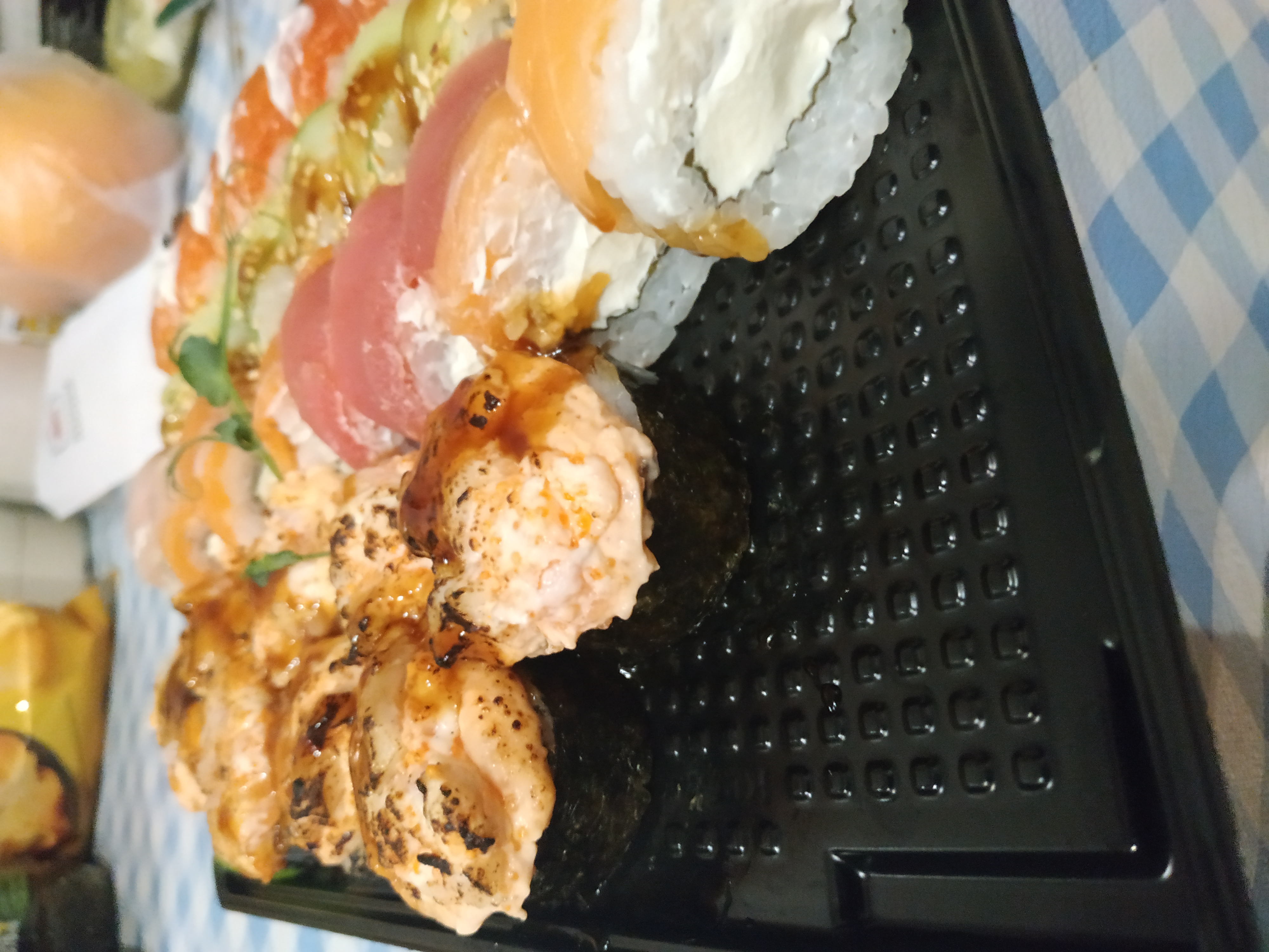 Очень вкусно. Спасибо. Давно заказываем у вас суши. Сразу забыли сделать фотографию. Уж очень быстро все съедается. Много рыбы, все очень свежее.