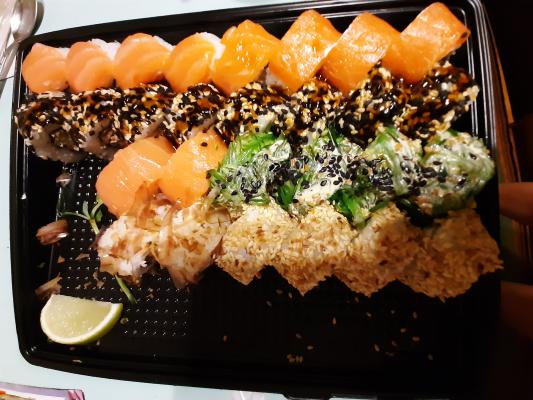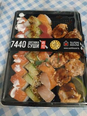 Присоединяюсь к отзыву ниже, брали на логойке сегодня сет - рис просто камень, ужасно не вкусный, в двух роллах попался какой-то непережевывающийся ингридиент - фото уже не буду выкладывать из-за неестетичности!