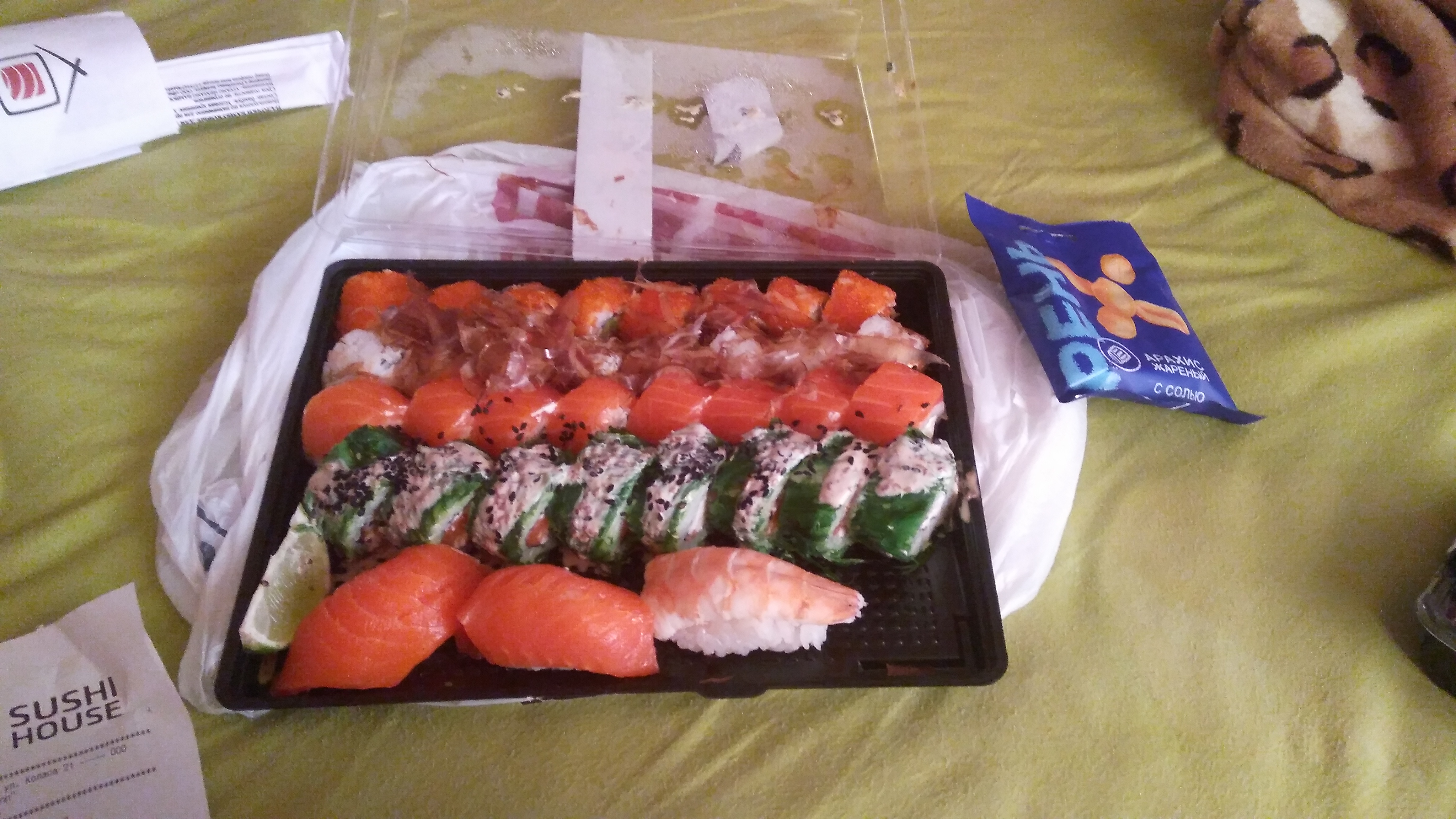 Заказывал Михара сет по промокоду +дополнительно несколько позиций на сайте. Курьер приехал с небольшим опозданием. Всё свежее и вкусное!