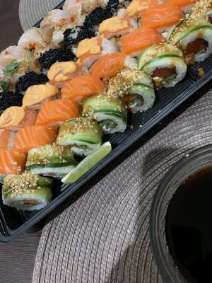 Заказали Кодзима сет на ДР мужа. Привезли в течении часа - все было очень вкусно: много рыбы, крема и сыра. Спасибо за вкусный обед!