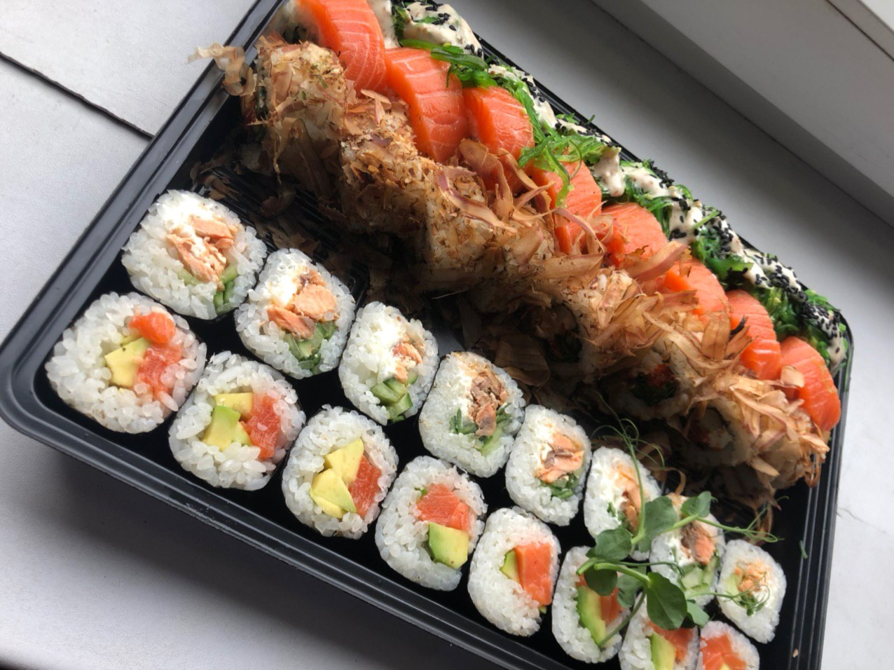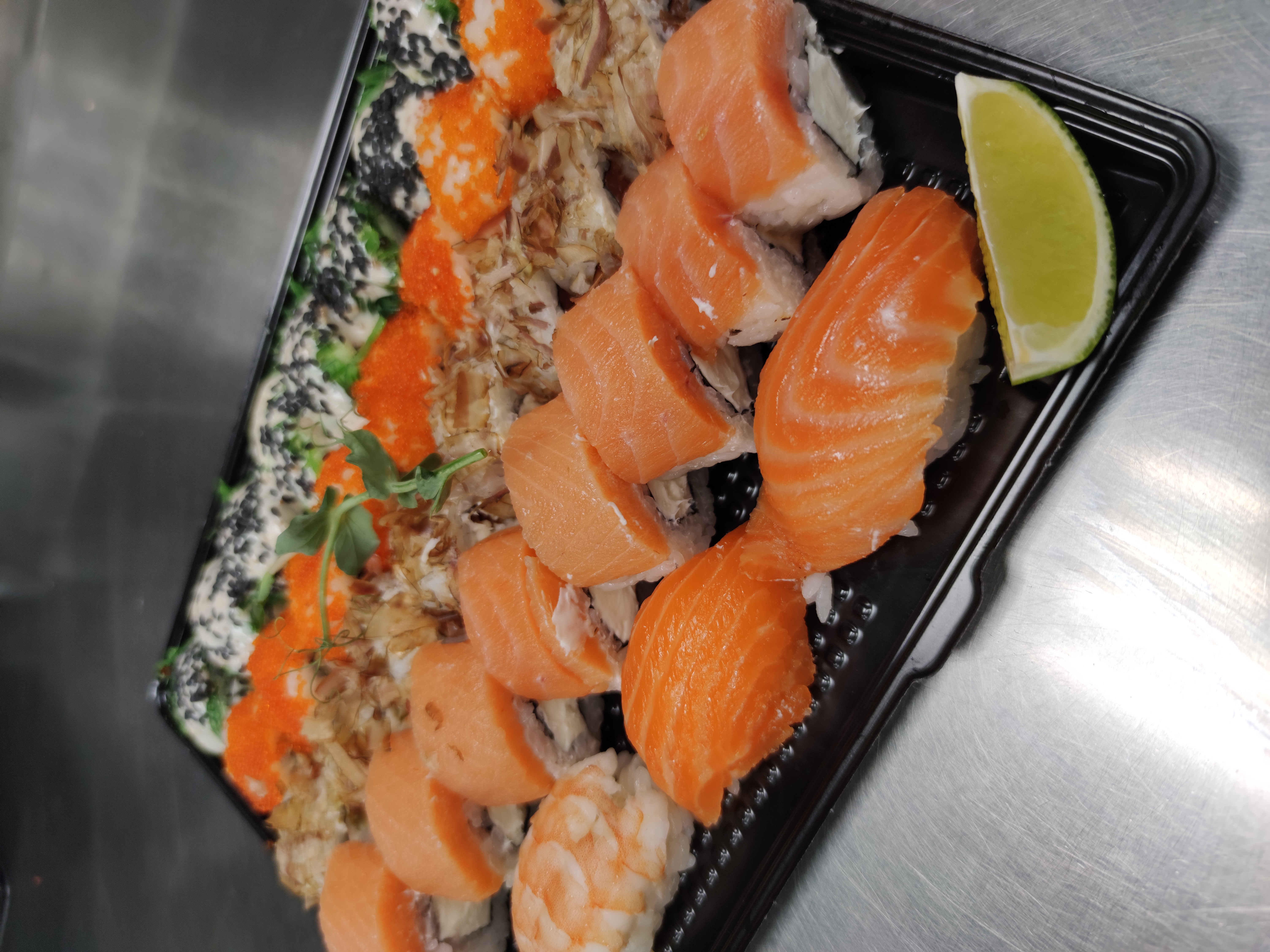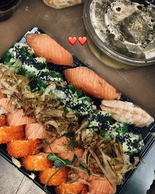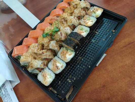 Много рыбы, скручены роллы отлично, мы с друзьями остались довольны, доставили за 40 минут, обслуживание на 5 звёзд, спасибо вам❤️❤️❤️