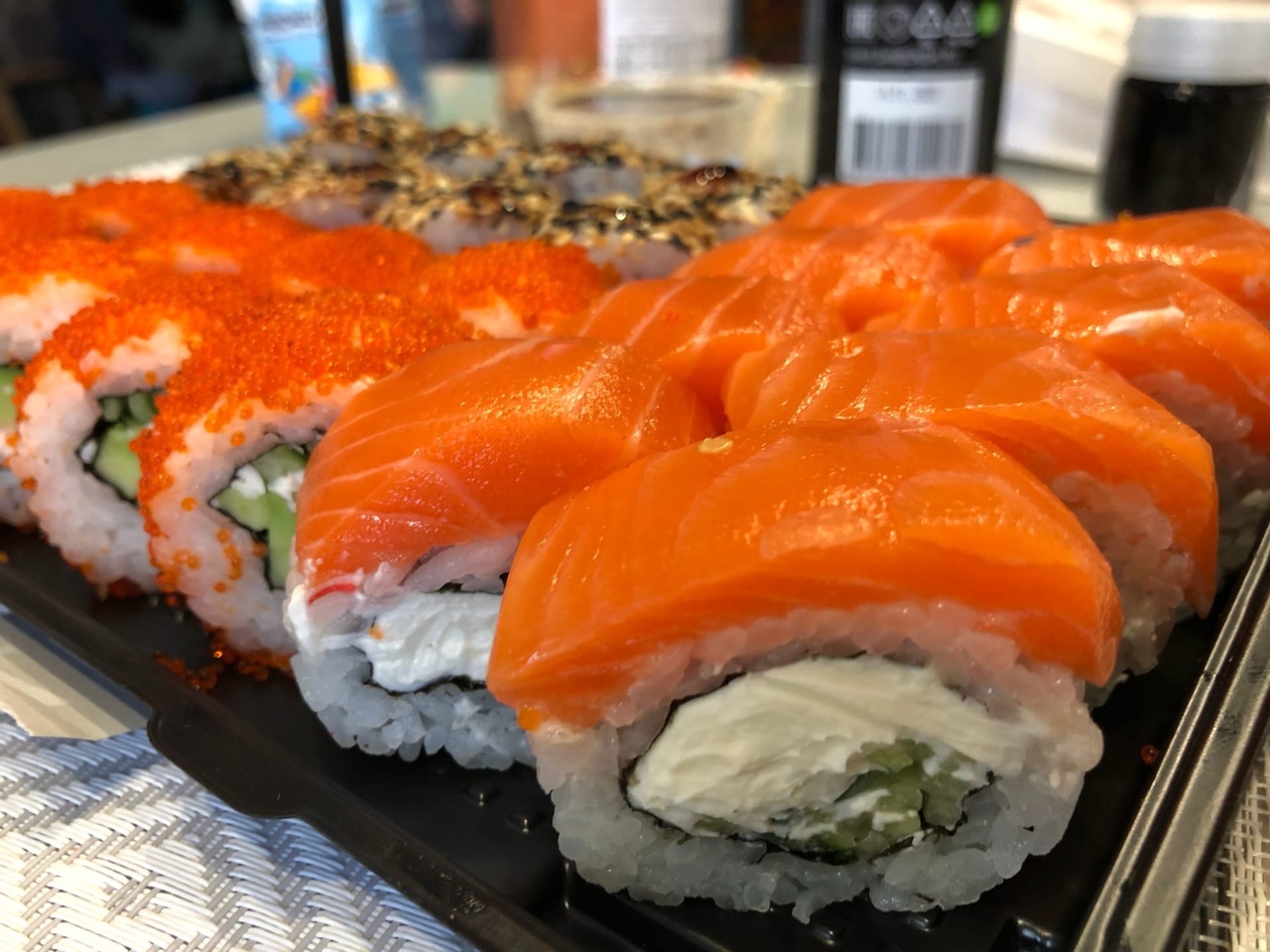 на фото вы видите сет UMI, + ролл за самовывоз дали в подарок. Качество супер, суши отличные, начинки много и всё свежее!