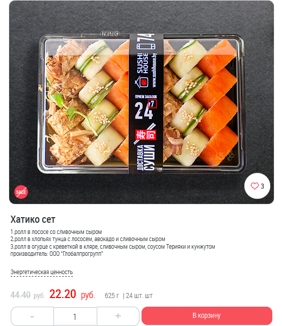 - Стоимость сета (1175 г, 40 шт):