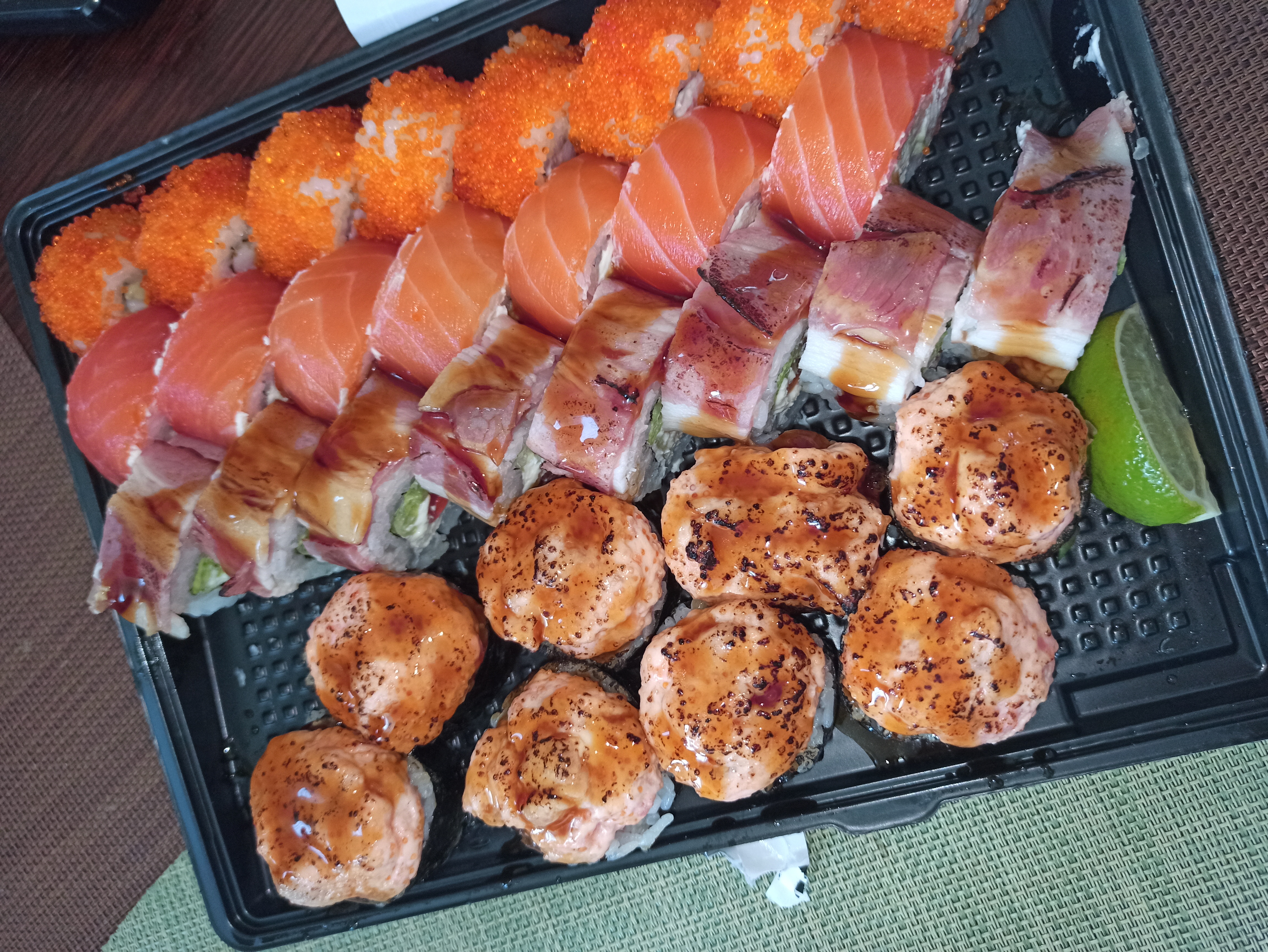 Дополняю отзыв: суши вкусные,  разошлись на ура у коллег. Если бы не вопрос по сервису и обсчету, были бы молодцы.