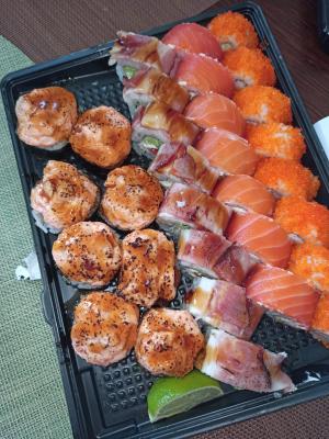 Суши у них вкусные, но столкнулись с неприятностью. Заказали сет, но курьер не привез ни одной пары палочек. Менеджер ничего не уточнила. На сообщения в Вайбере доставка не отвечает.