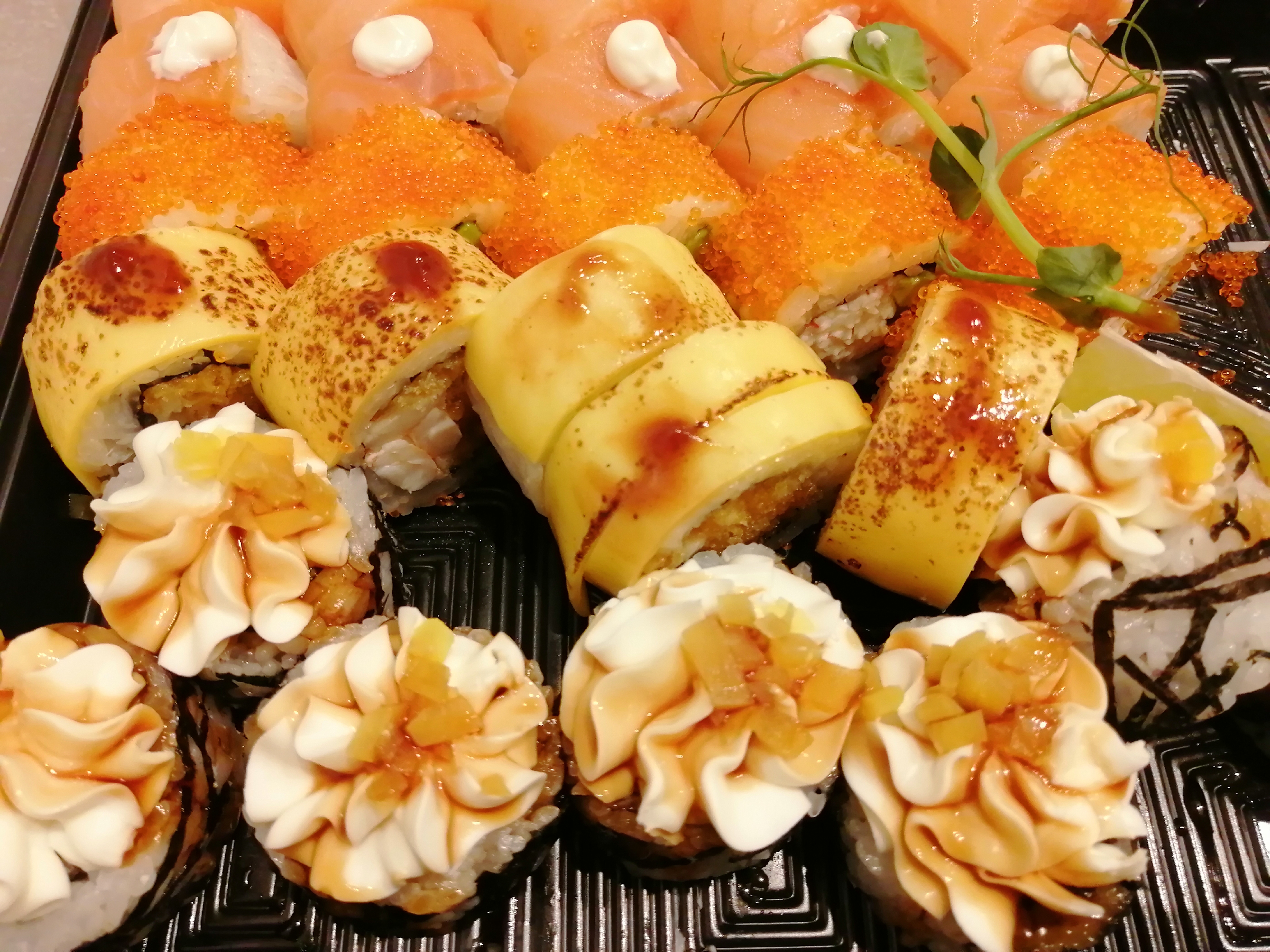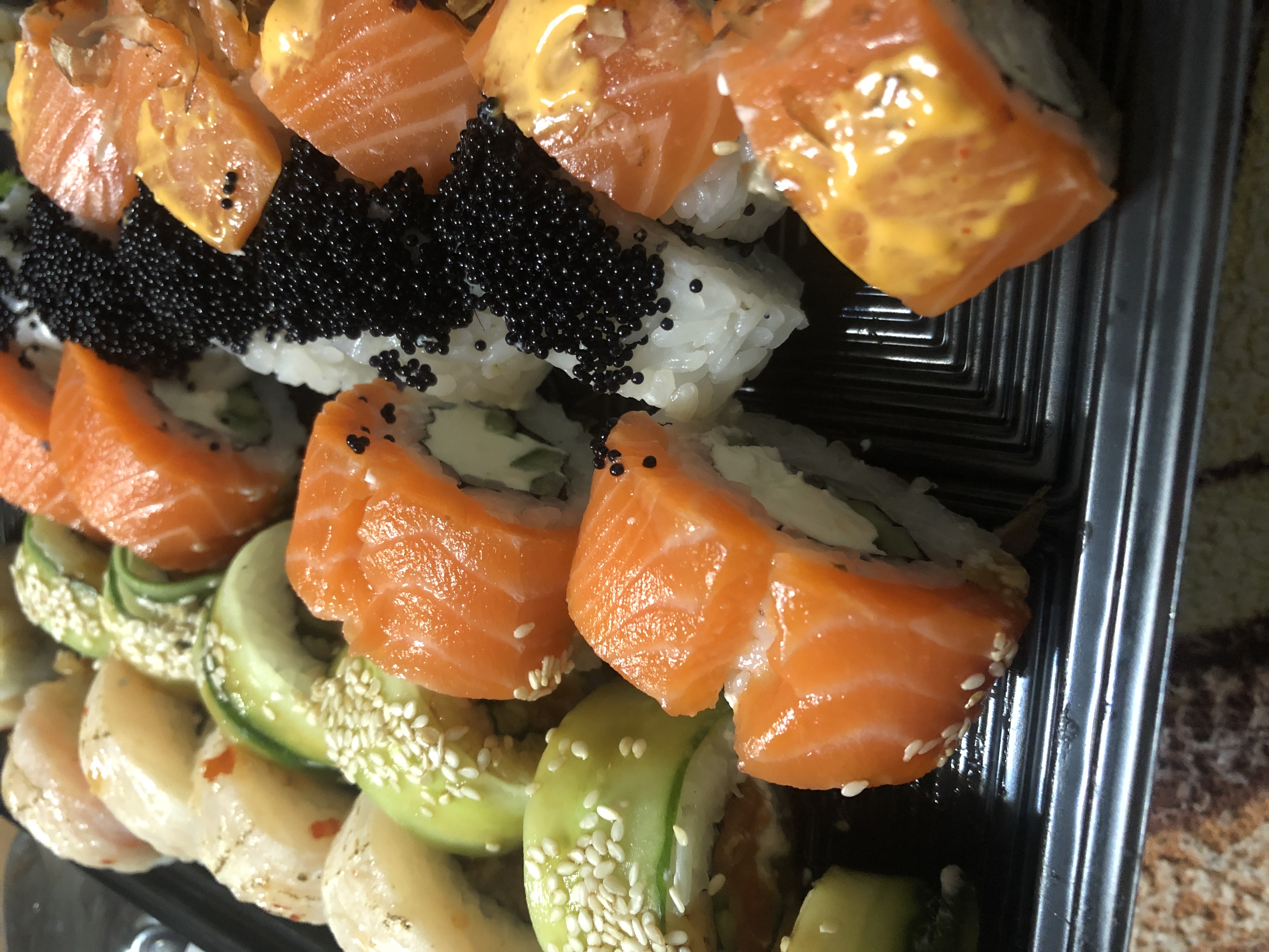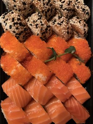 Заказали сет «кодзима» , не в восторге если честно , толи потому что суббота и ребята работают на поток , толи повар не с той ноги проснулся, когда брали в первый раз -это были роллы на уровне, сейчас рыба в филадельфии водяная и разваливается, такое чувство как будто на скорую руку размораживали вот горячей водой, сами роллы палочками не взять, разваливаются , Если только руками , но спасибо ореховый соус очень вкусный и девушка диспетчер а так же курьер , очень вежливы , приятно общаться.
